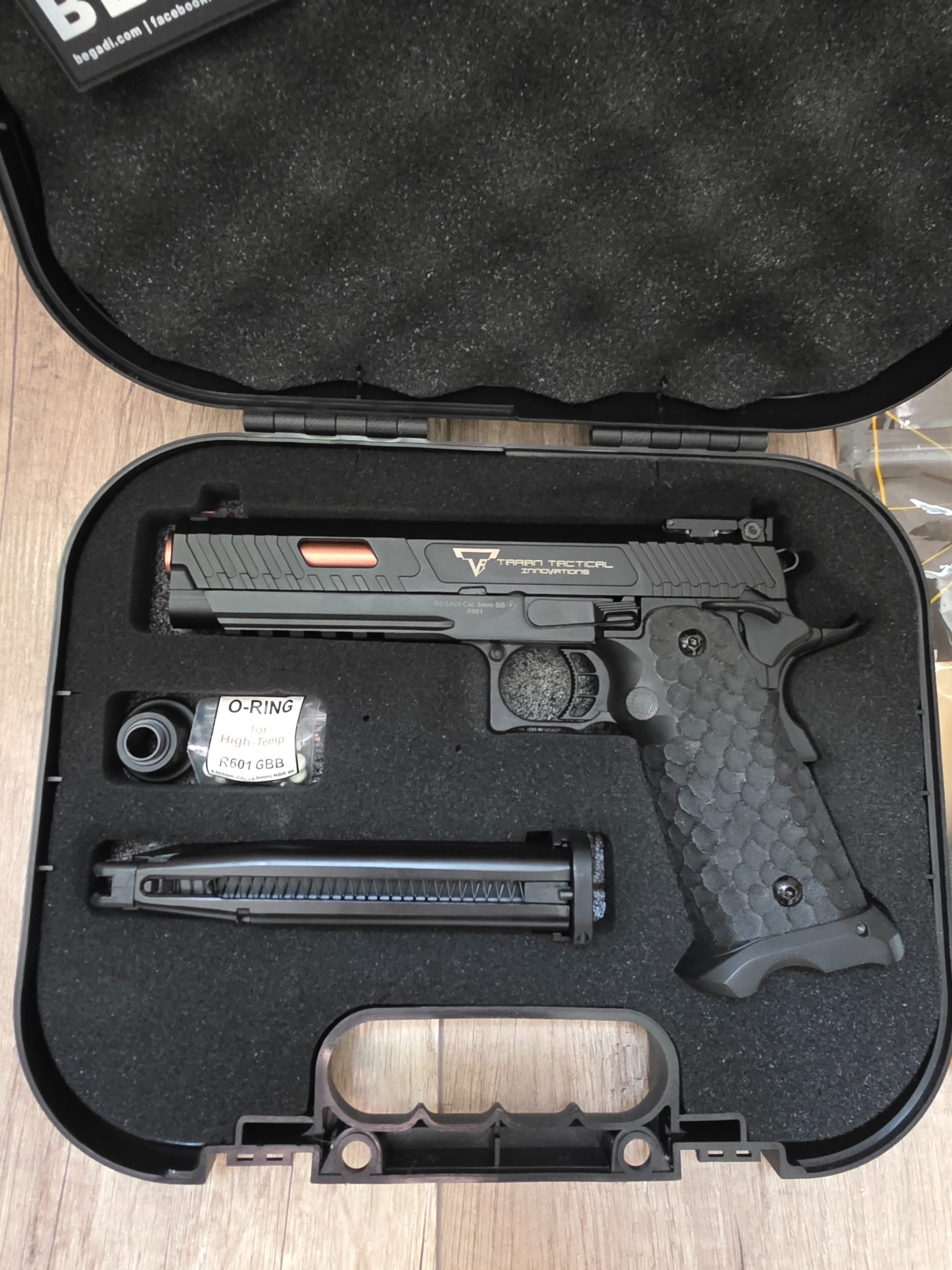 verkauft wird eine Army Armament R32 Excalibur GBB "Begadi Special Version" -schwarz- (frei ab 18 J.). Die Airsoft hatte noch keinen Spieltag (nur Regal-Deko gewesen). Wie es so ist, weil sie nur lag, muss die Dichtung im Magazin ausgetauscht werden. Im Zubehör ist ein O-Ring dabei. Ich kenne mich nicht ganz aus, aber das kann bestimmt sehr günstig behoben werden.
