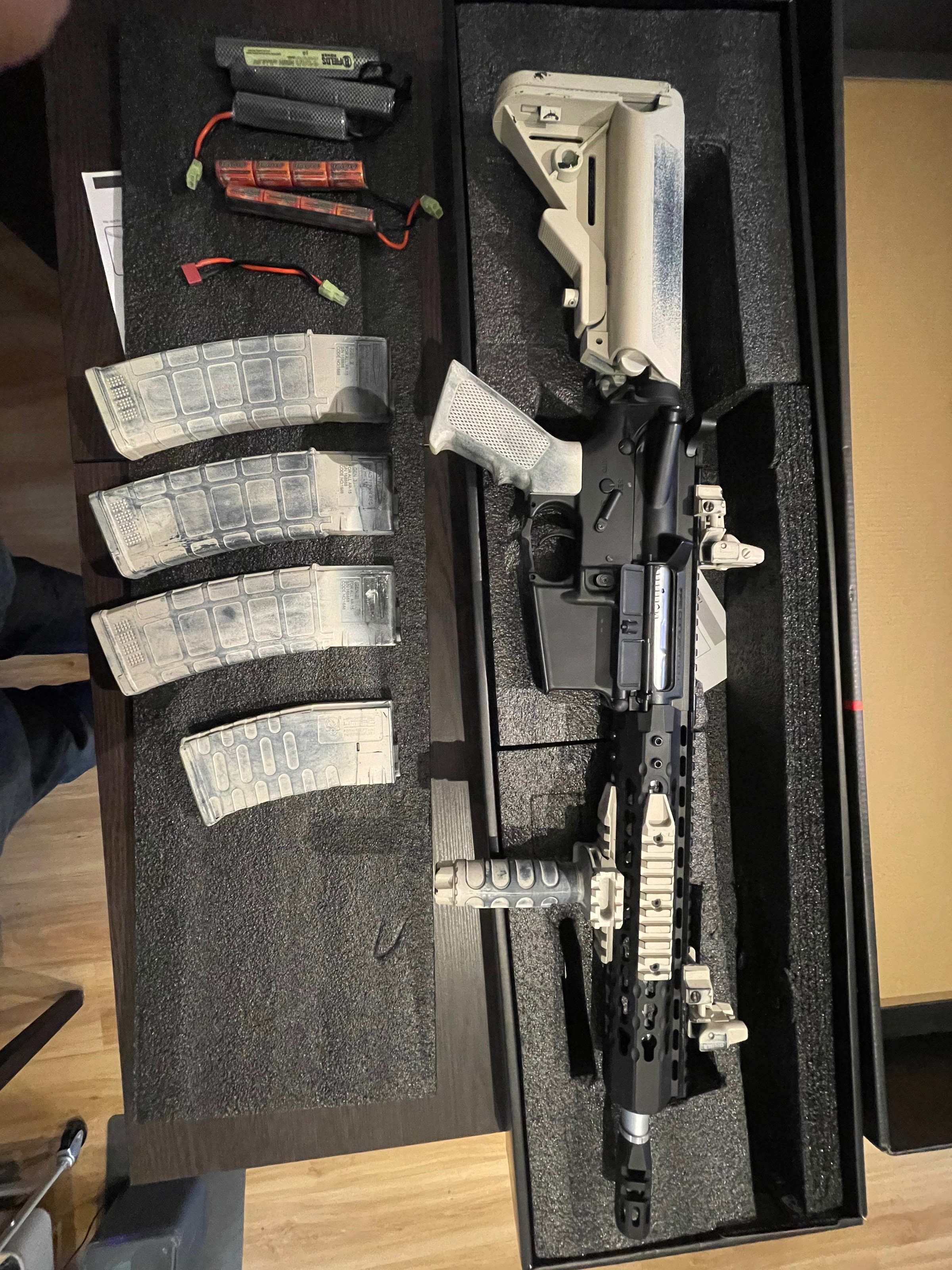 Komt met 4 magazijnen, 2 batterijen, 1 connector, grip
