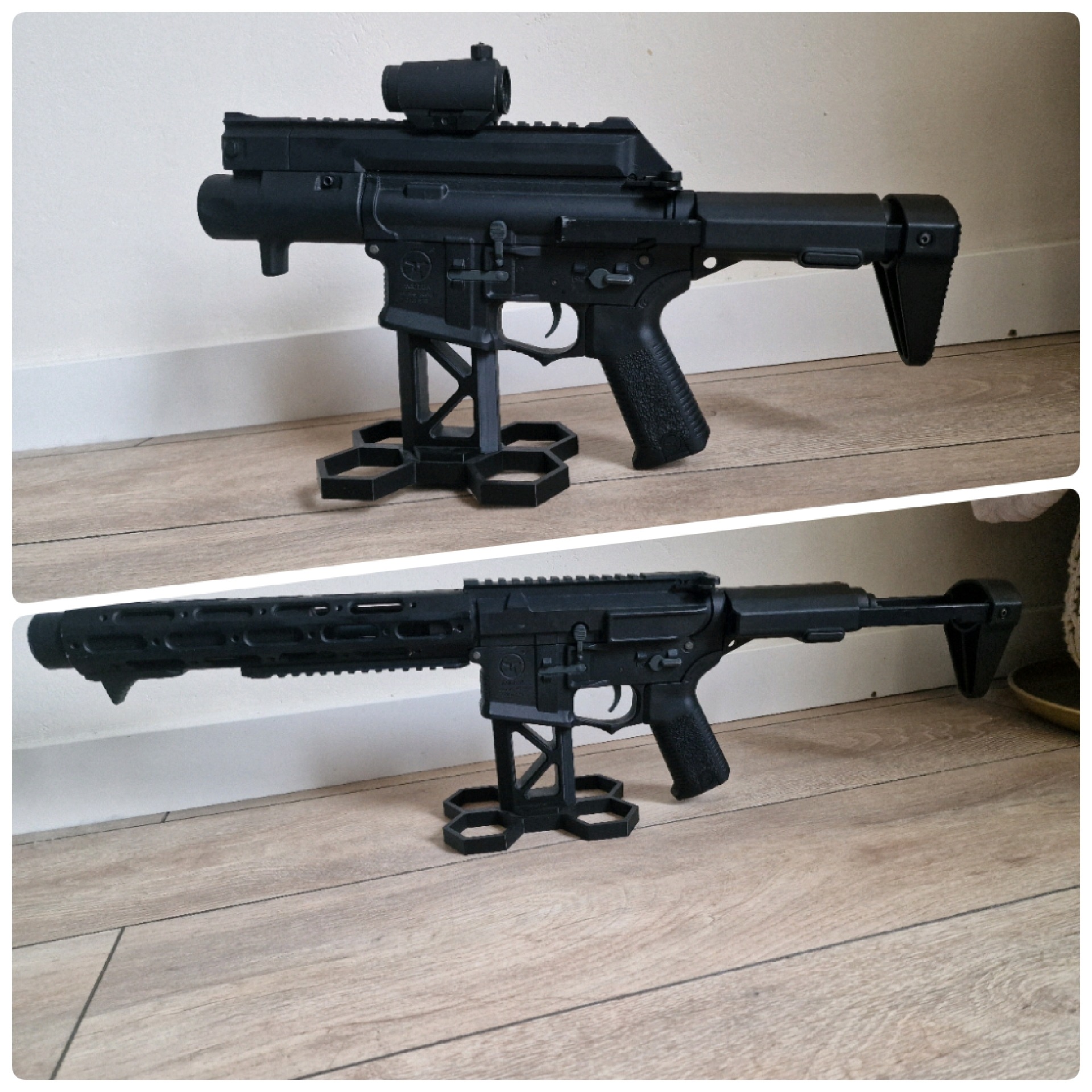 Replica is geupgrade schiet 1-1,1 met de honey Badger upper en 0,7 met de korte upper