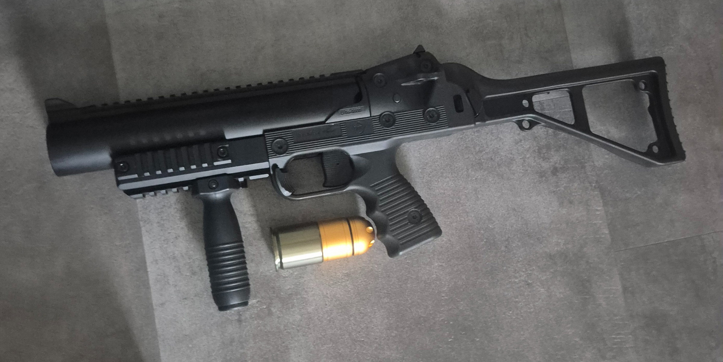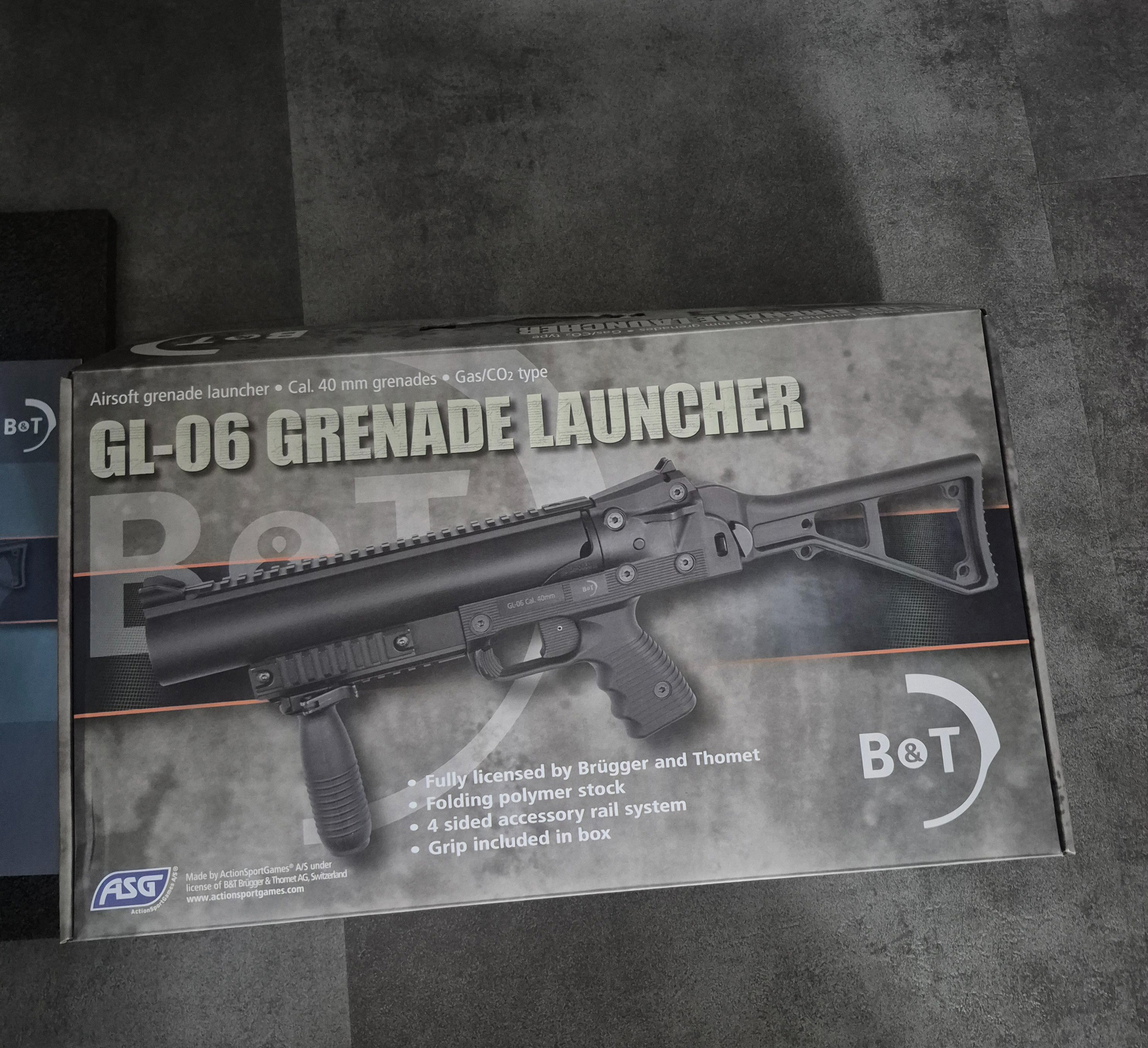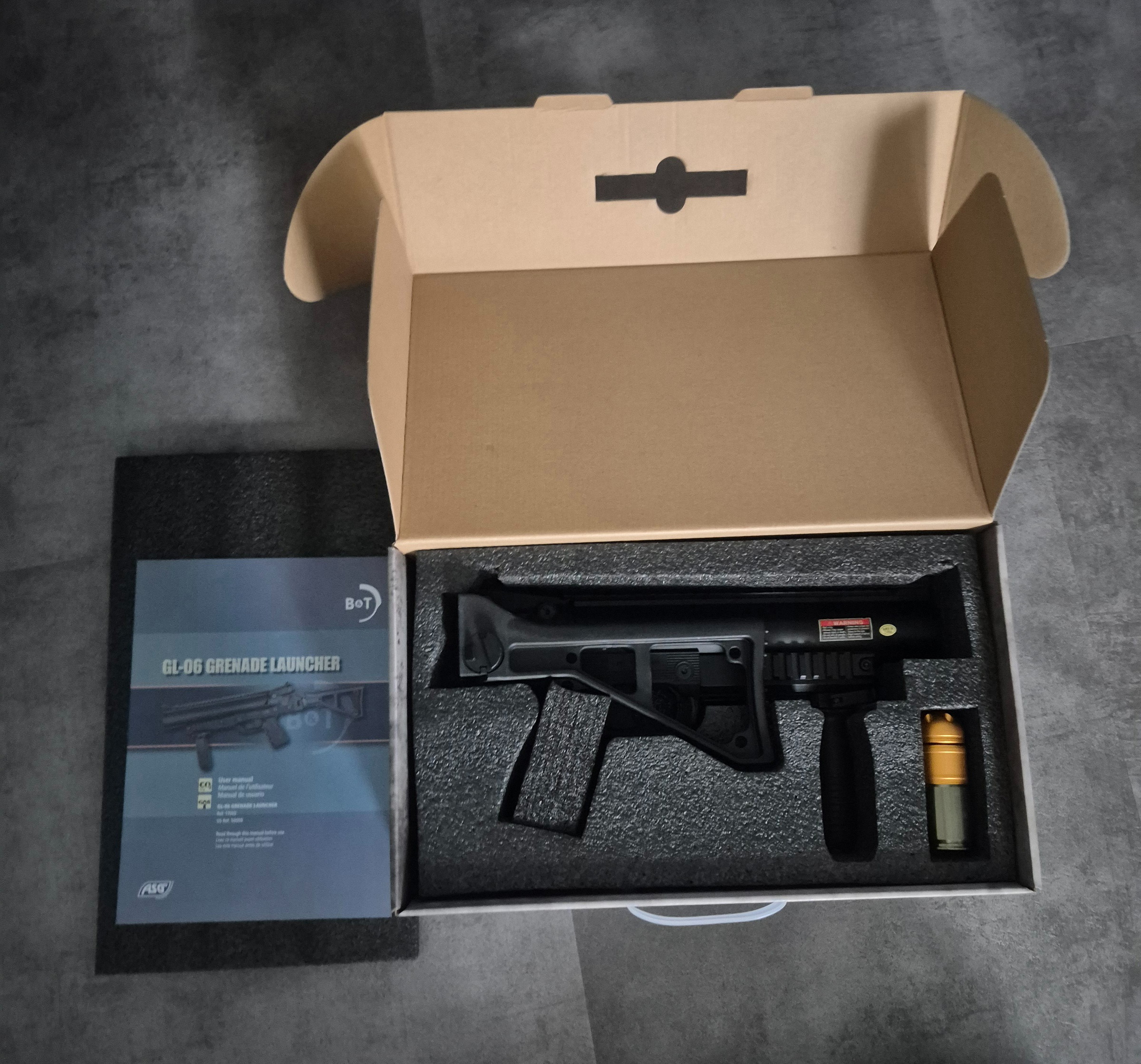 Een asg b&t gl-06 grenade launcher de stock is opvouwbaar, en de grip kan los en de officiele doos.