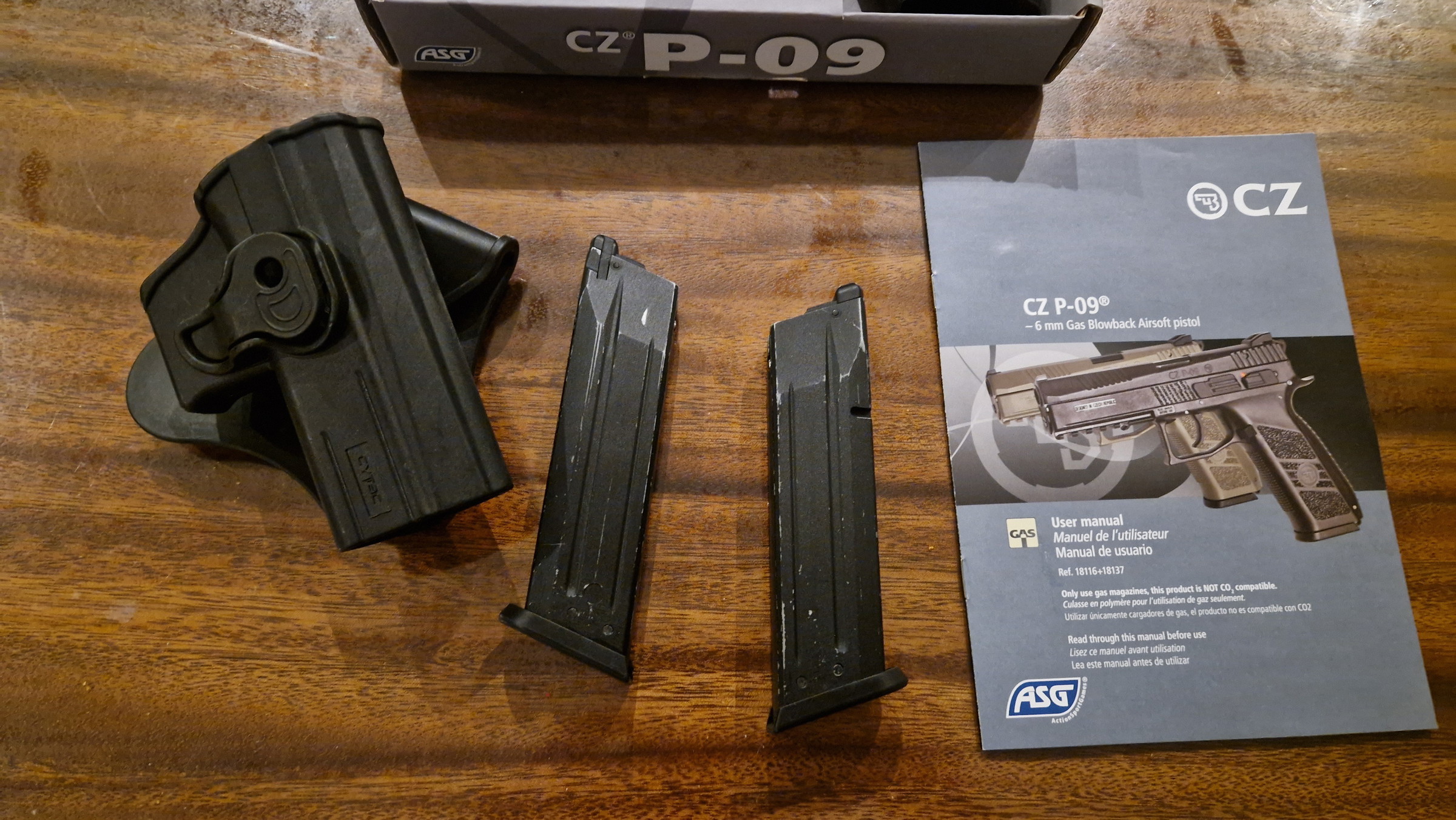 Bij deze aangeboden mijn ASG CZ P-09, replica is ongeveer in 15-20 skirms gebruikt. Komt met 2 magazijnen en een riem + been adapter voor de quick draw holster.