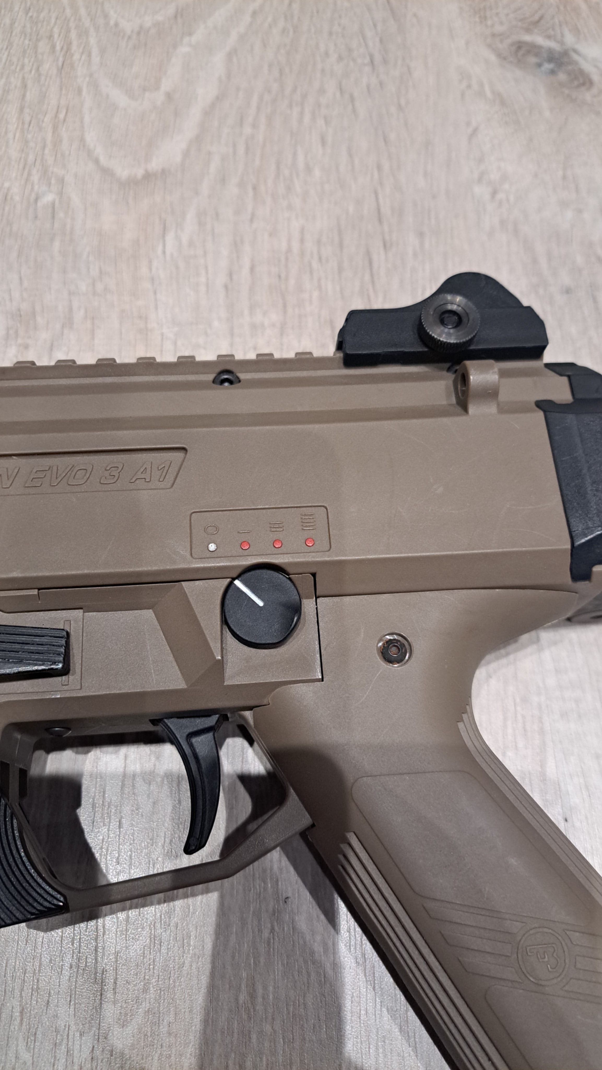 Replica gaat weg omdat deze niet meer gebruikt word. Enige upgrade dat hij heeft is een nieuwe piston met stalen tanden, stalen spring guide en een andere veer om binnen de 1.2j te blijven.