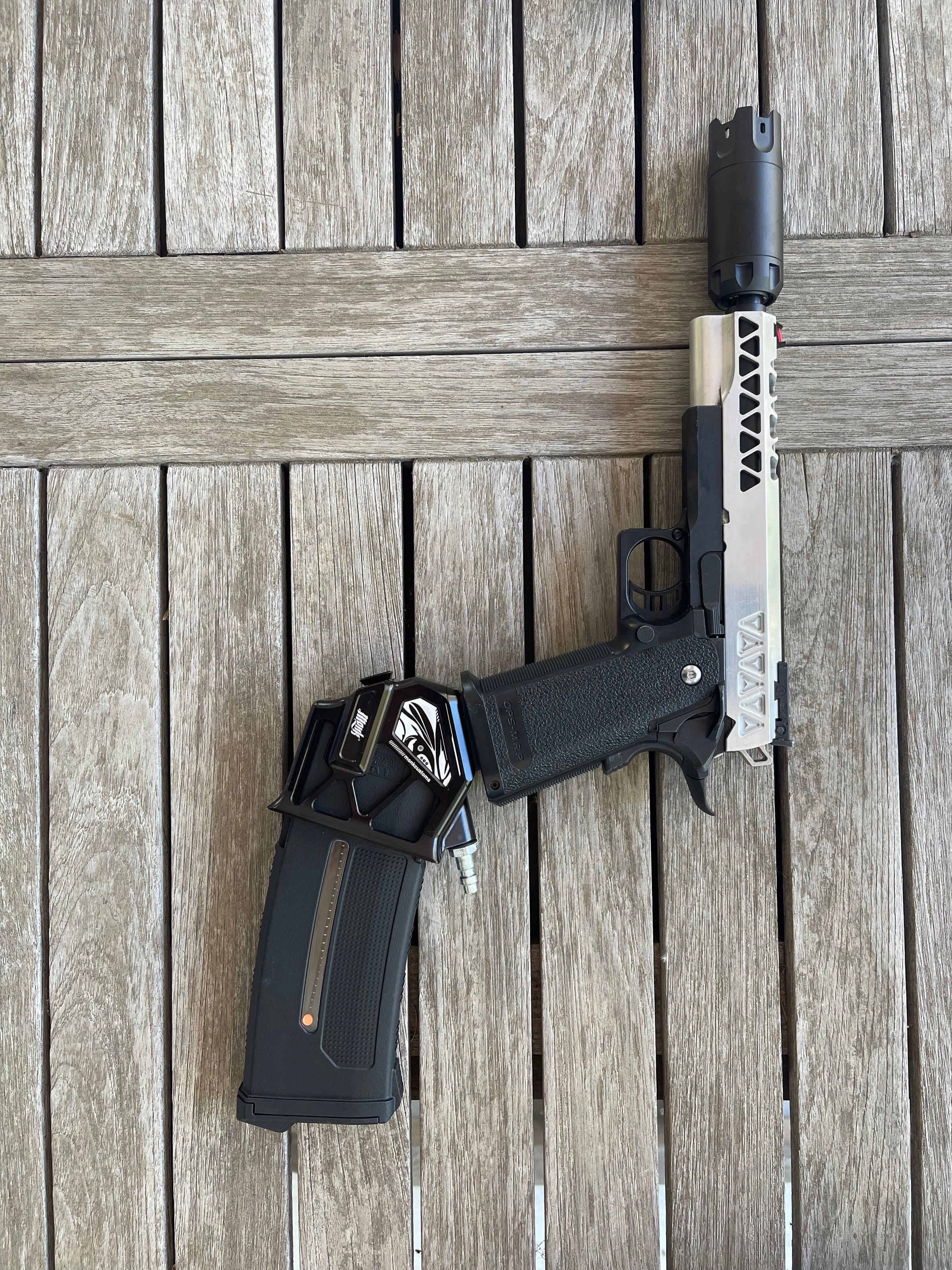 - Muzzle break met lichteffect.