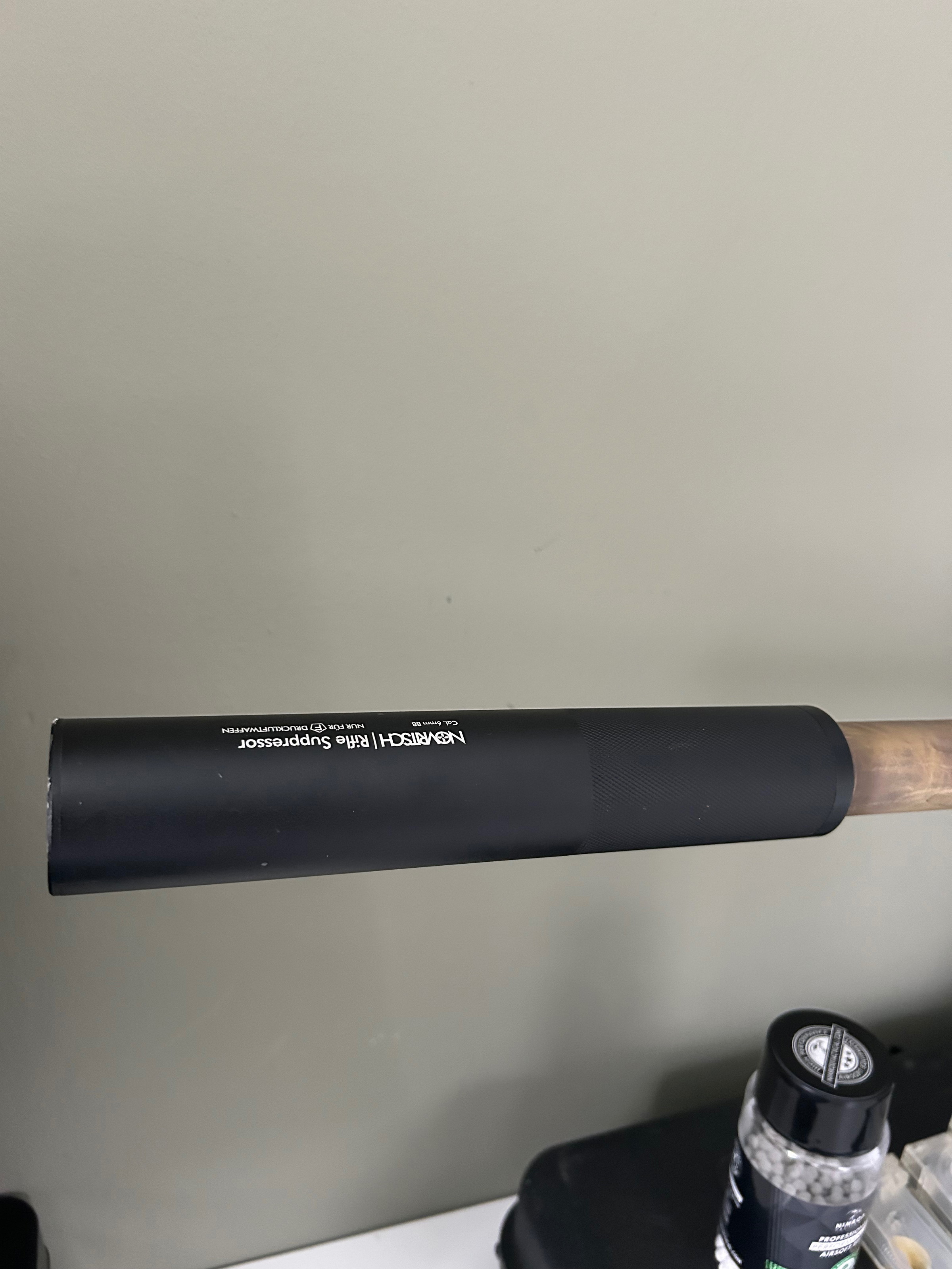 Word geleverd met 3 magazijnen, demper, .36bbs, 3-9x scope en een replica koffer.