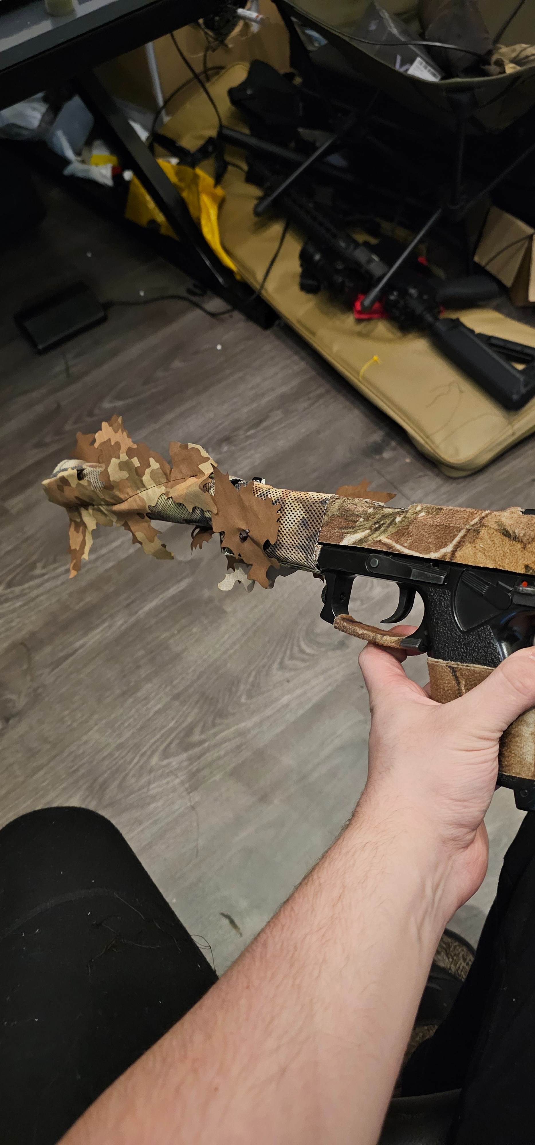 Sinds kort maak ik zelf mijn eigen ghillie covers voor over replicas, gopro's, scopecams, dempers, scopes noem maar op. Doordat ik zelf een naaimachine heb, meerdere lappen KMCS stof, leaves en mesh er bij heb kan ik zelf op elke maat covers maken.