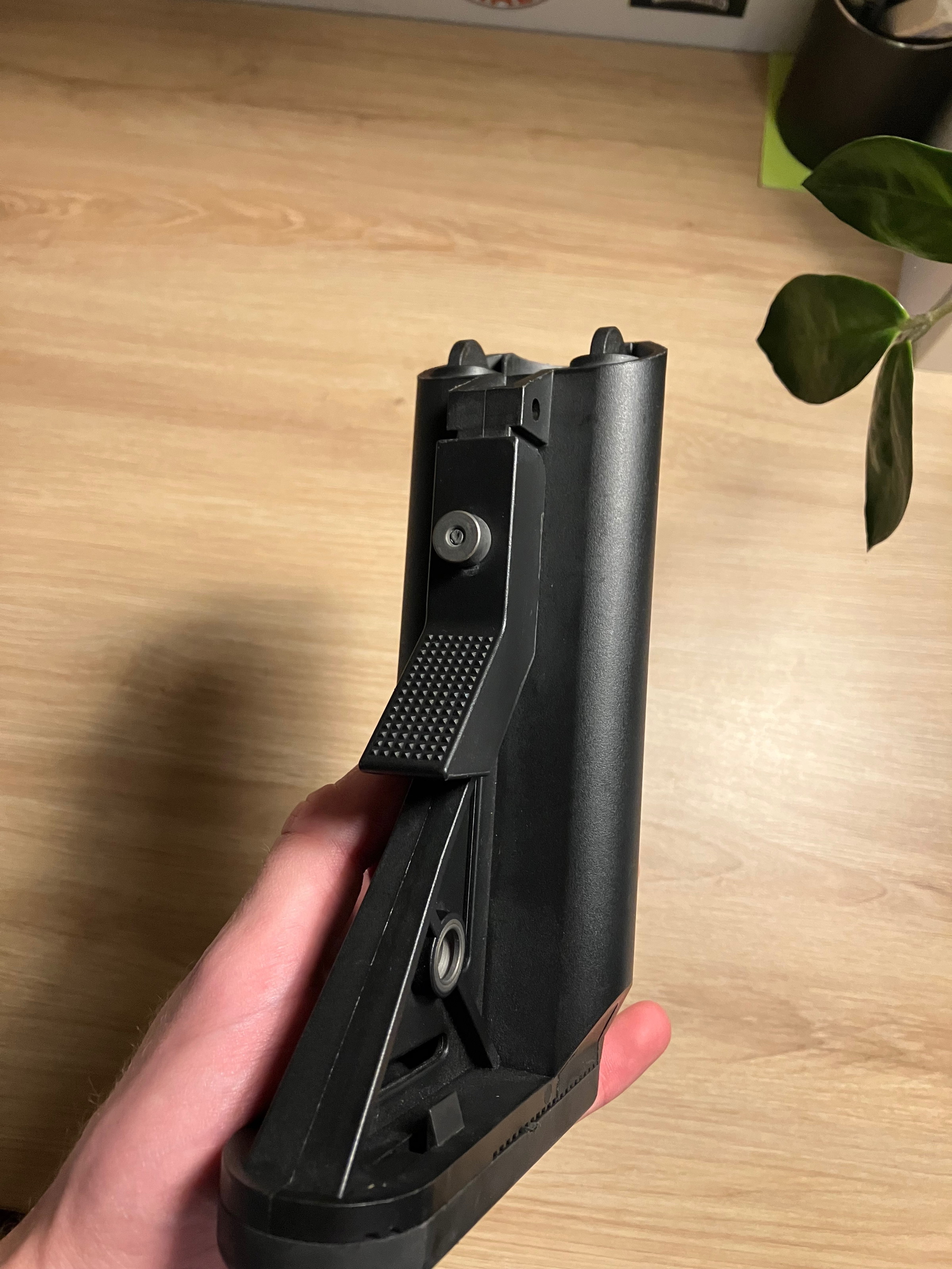 Je vends cette crosse type M4 en full polymère de marque G&P. Couleur noire. Léger accro sur le talon de crosse.