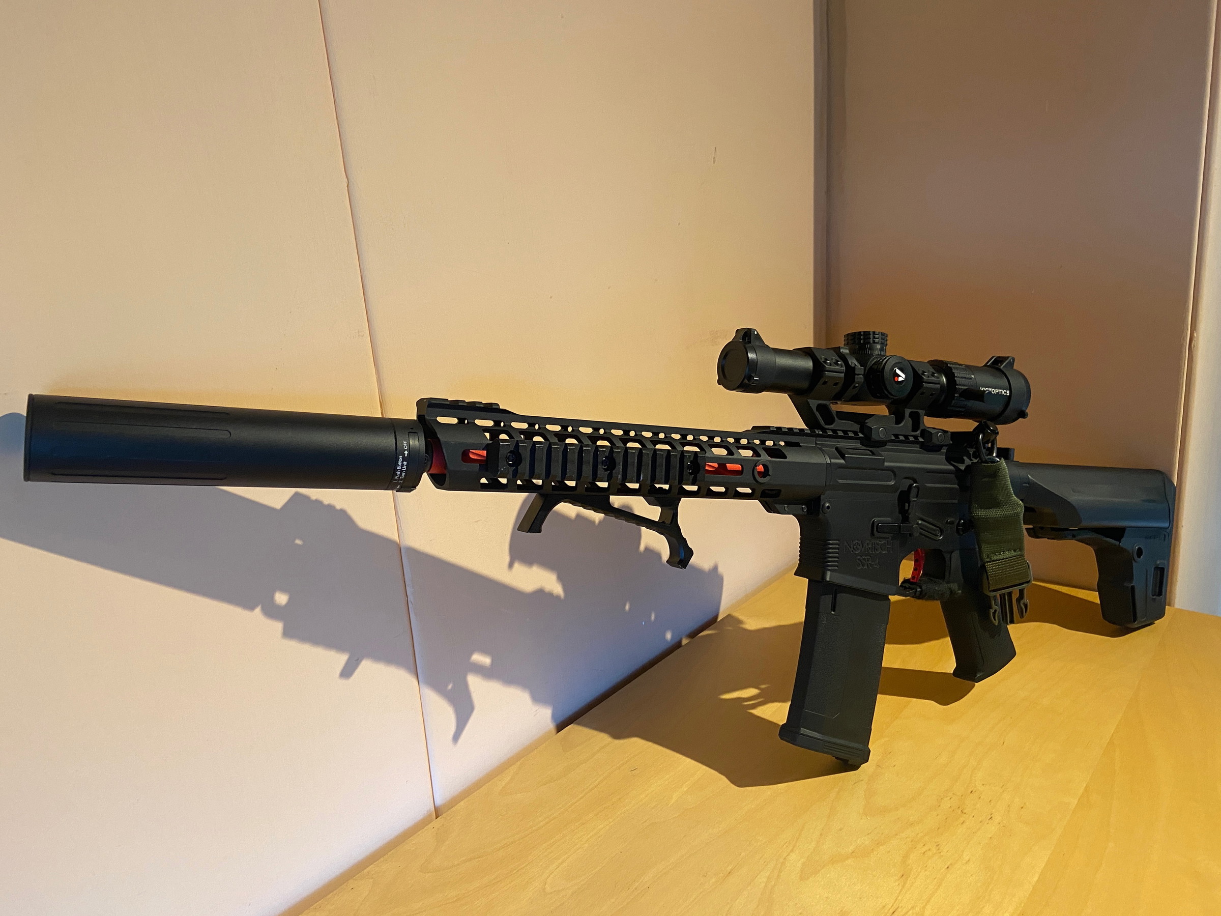 Verder heeft deze replica een hele mooie look met rode outerbarrel, demper, rode trigger en een elegante pistol grip. Ook uitgevoerd met een EPS stock voor makkelijke batterij montage. Deze schiet met 0.28gr op 1,2 Joule en kan ongeveer 28 shots per second op full auto. Alles is van metaal behalve de grip en stock, stuk gaat het niet. Dit is een echte Assault rifle voor de pro’s.