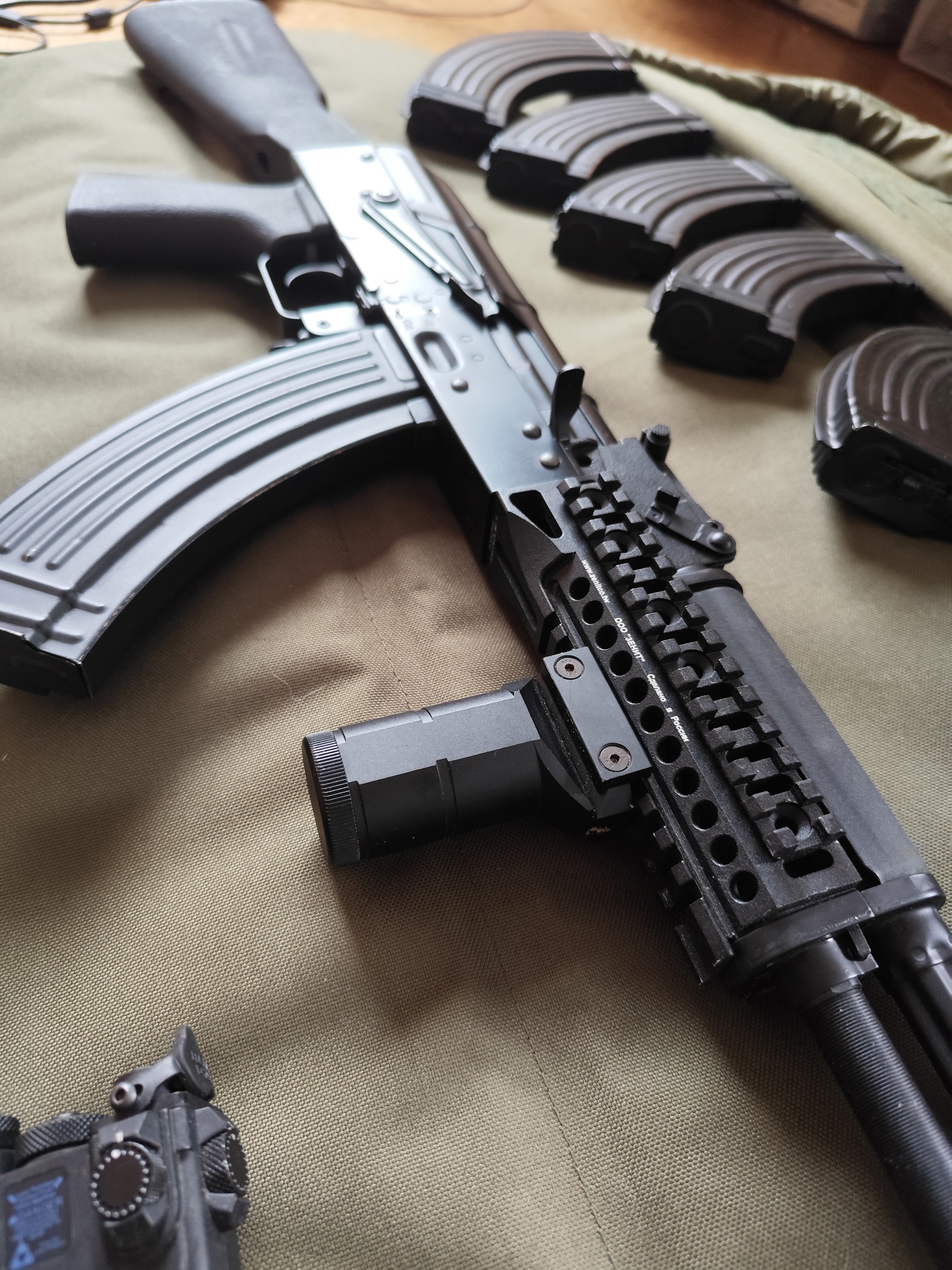 Metalen CYMA cm.048m met polymer furniture. Replica heeft goede range en kan tegen een stootje, zoals je van een cyma mag verwachten. Heb deze in ongeveer 5 skirms gebruikt, en nooit problemen mee gehad. Hij gaat weg omdat ik over ben gestapt op een ak105. De ak samen met een metalen magazijn, 4 gepainte magazijnen, twee batterijen en een flashlight mag weg voor €149 of een goed bod.