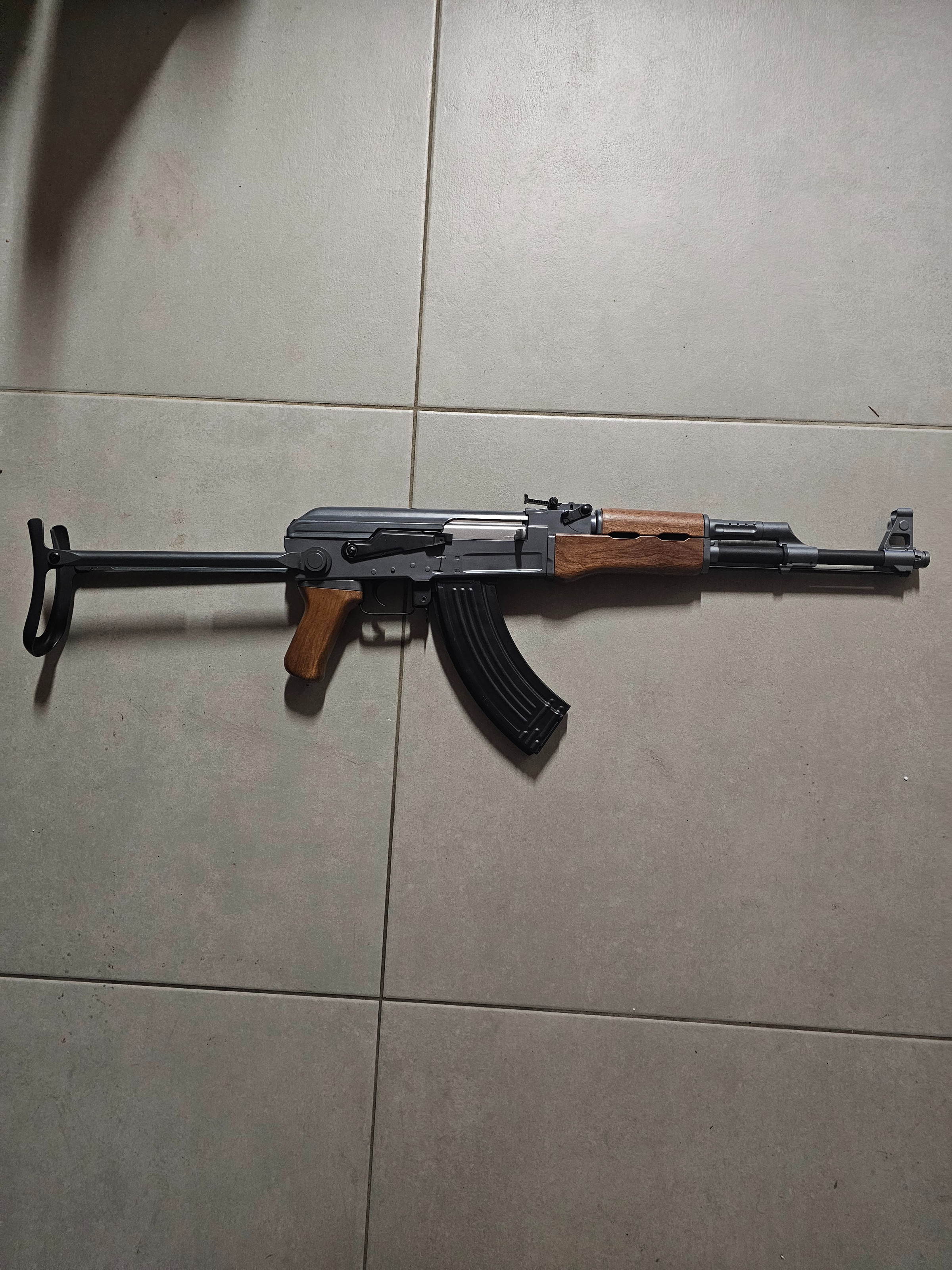 Icône AK classique, parfaite pour du mid-range ou CQB avec la crosse pliée. Très peu utilisée, propre, pas de rayures majeures, tout fonctionne parfaitement (semi/full auto OK)