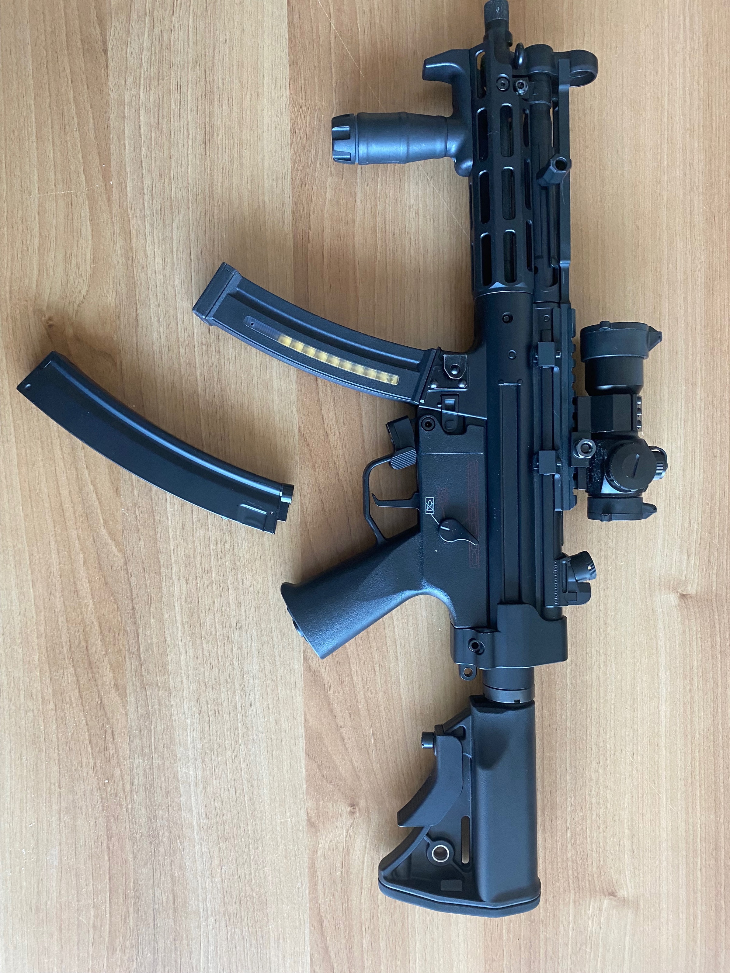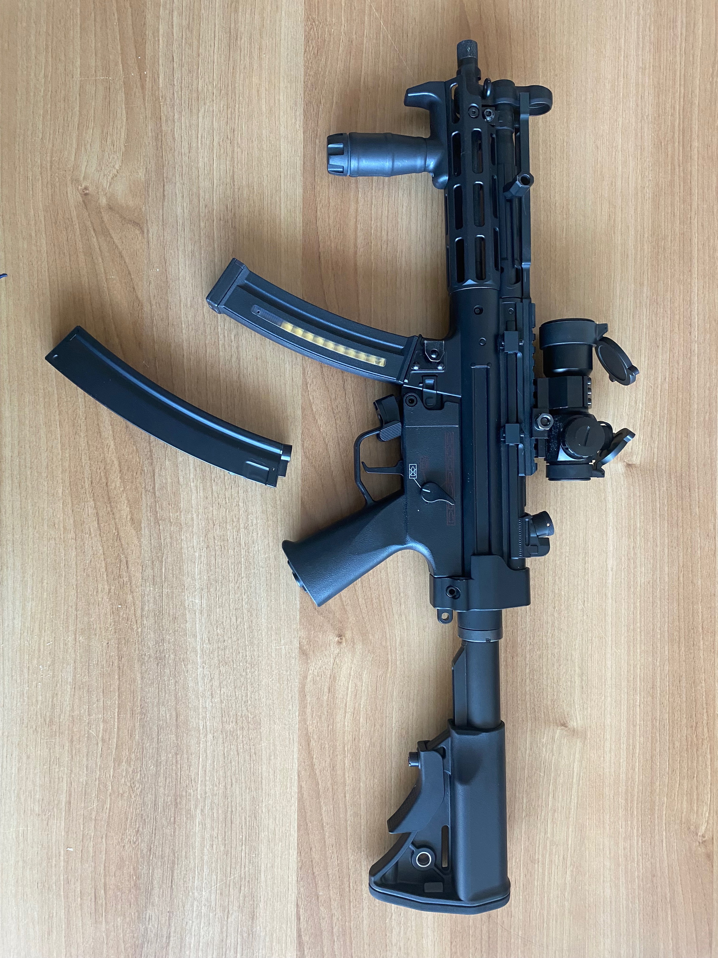 Word verkocht omdat ik lang geen airsoft heb speel, hij is in totaal 3 keer gebruikt. Er zijn wat kleine krasjes maar niks wat heel zichtbaar is. Hij word verkocht inclusief de red/green dot, en een extra magazijn.