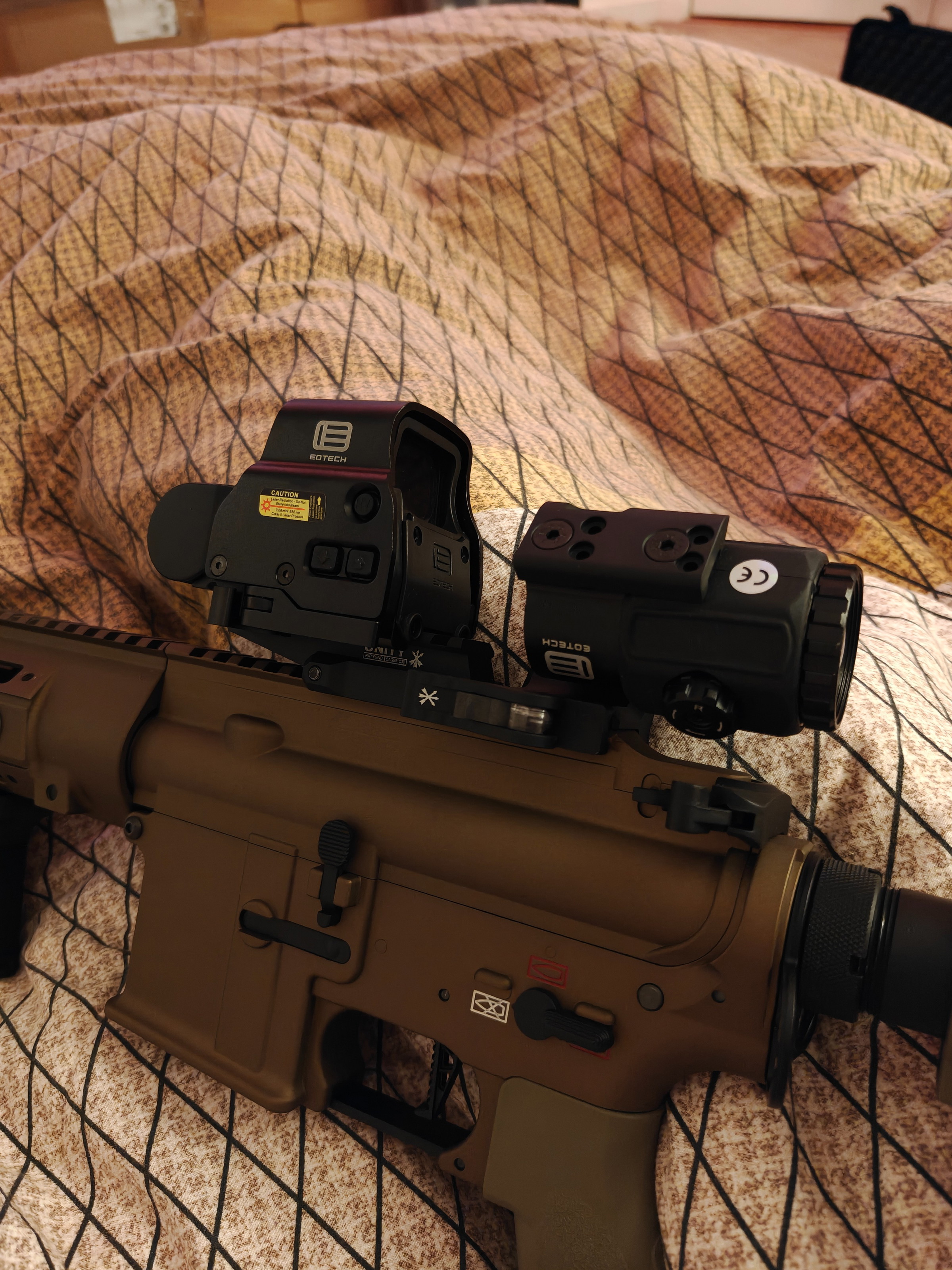 Red dot en magnifier op unity riser (eotech)