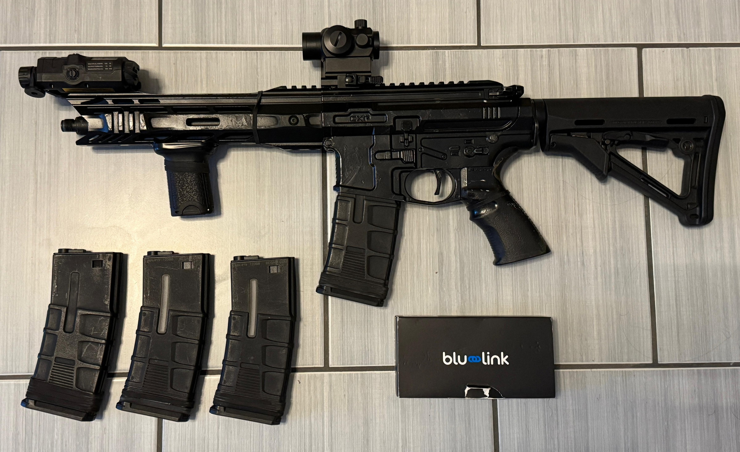 Zum Verkauf steht meine gebrauchte ICS CXP Mars 2. Die Waffe weist normale Gebrauchsspuren auf, ist aber technisch in einem guten Zustand und funktioniert einwandfrei. Gespielt habe ich sie etwa 10 mal mit dieser Ausstattung. Das F im Fünfeck ist bei genauerer Betrachtung ebenfalls zu erkennen.