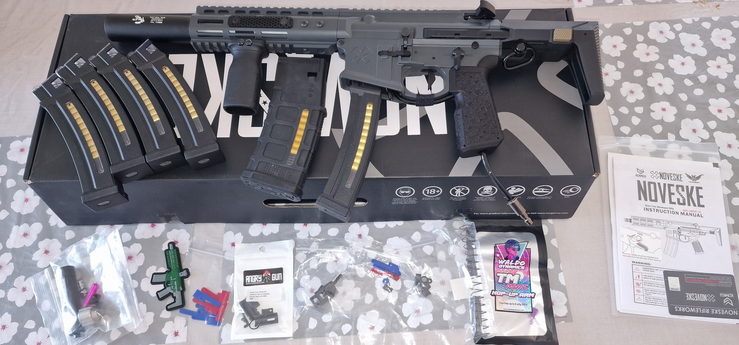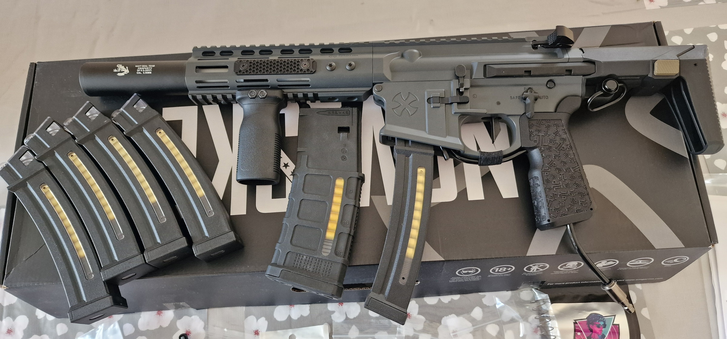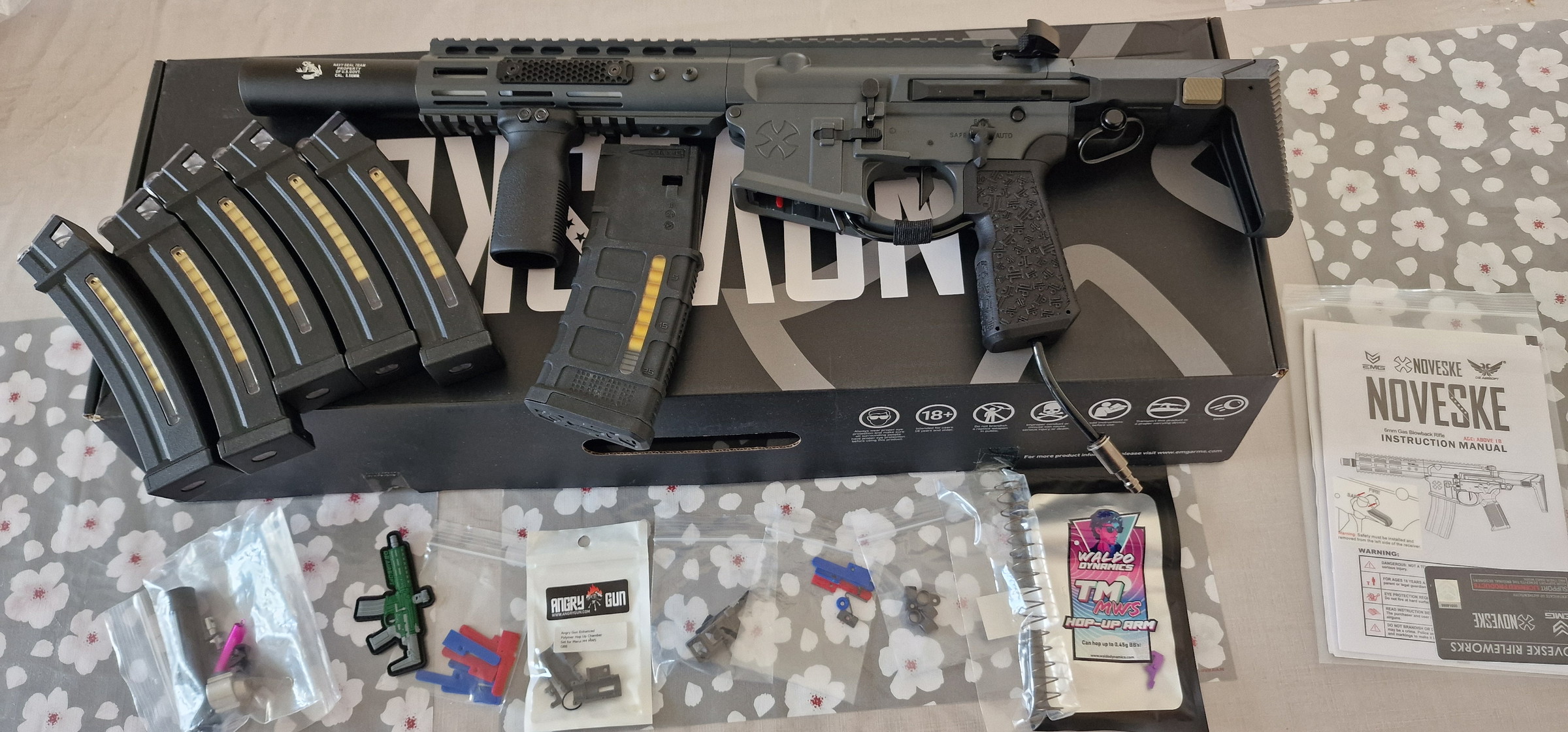 La réplique est vendue avec sa boite et son chargeur d'origine (il faudra juste lui remettre un gaz route pour le rendre fonctionnel. Étant donné que celui d'origine a servi à l'adaptateur HPA)