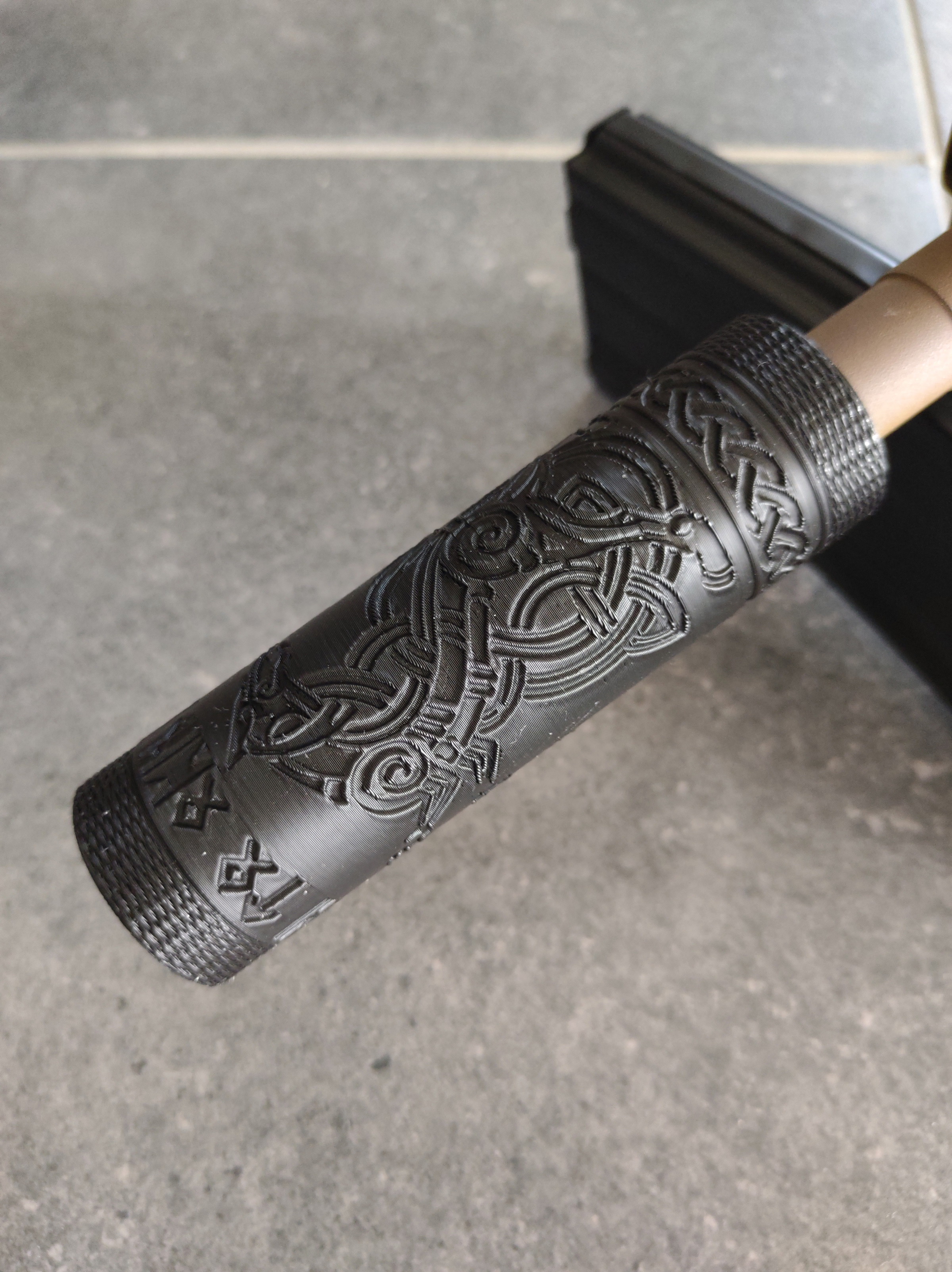 Heeft ook een leuke 3D print viking rune silencer een reddot en B3 promax charger met 7.4 Lipo batterij.
