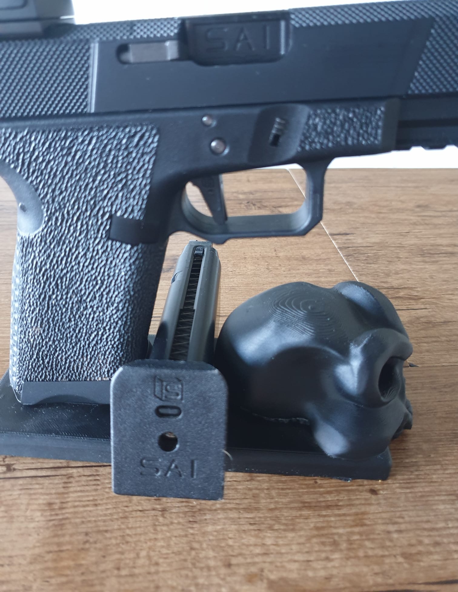 • De SAI BLU, volledig ontworpen, geproduceerd en op de markt gebracht door Salient Arms, is SAI's eerste serieproductiepistool. Het is ontwikkeld met één doel voor ogen: de ergonomie van de M&P combineren met de betrouwbaarheid van de Glock. Met agressieve kartels op de slede, een ergonomische greep en trekkerbeugel, en verwisselbare handgrepen, is de SAI BLU ontworpen om zo veelzijdig mogelijk te zijn.
