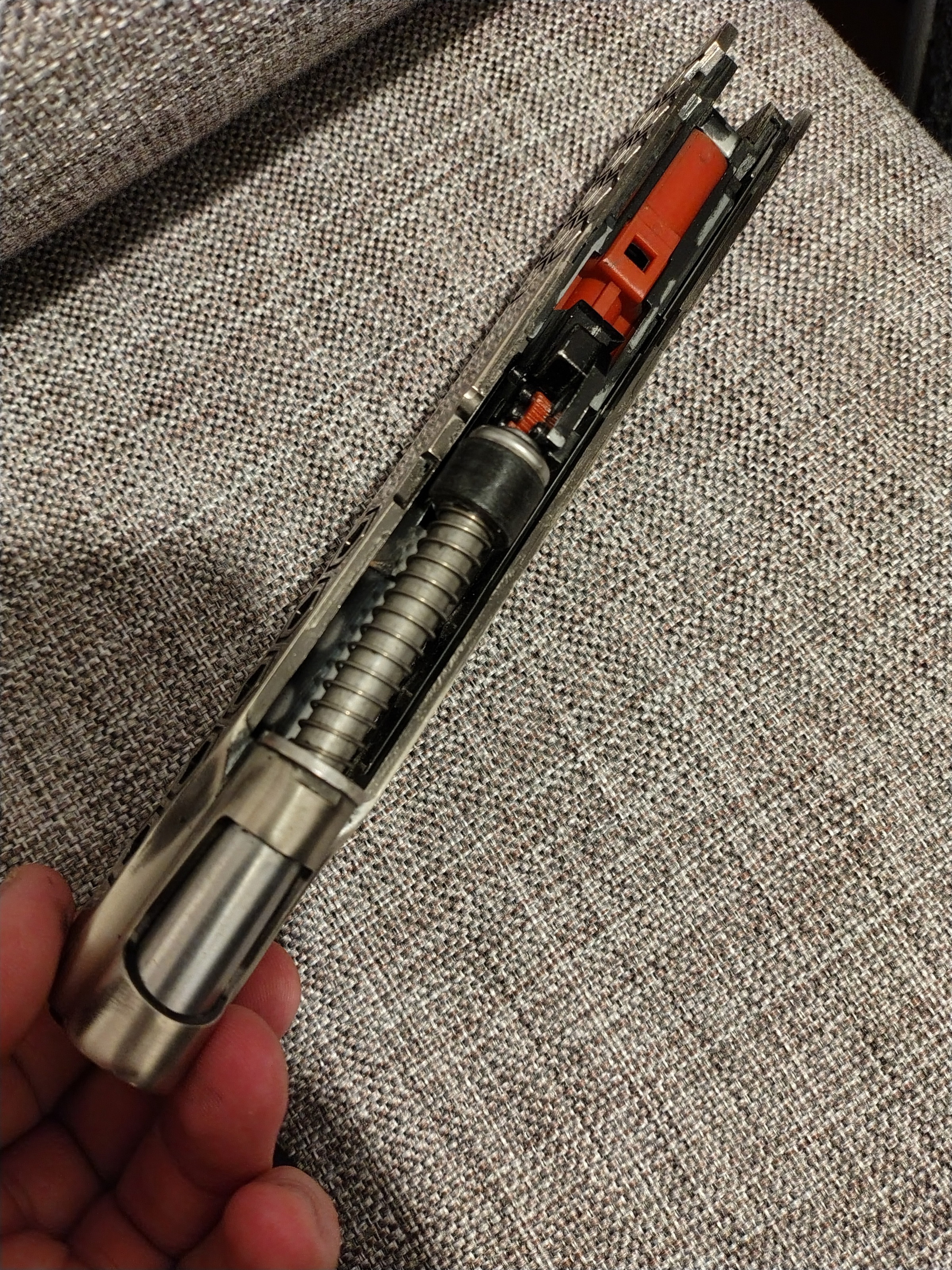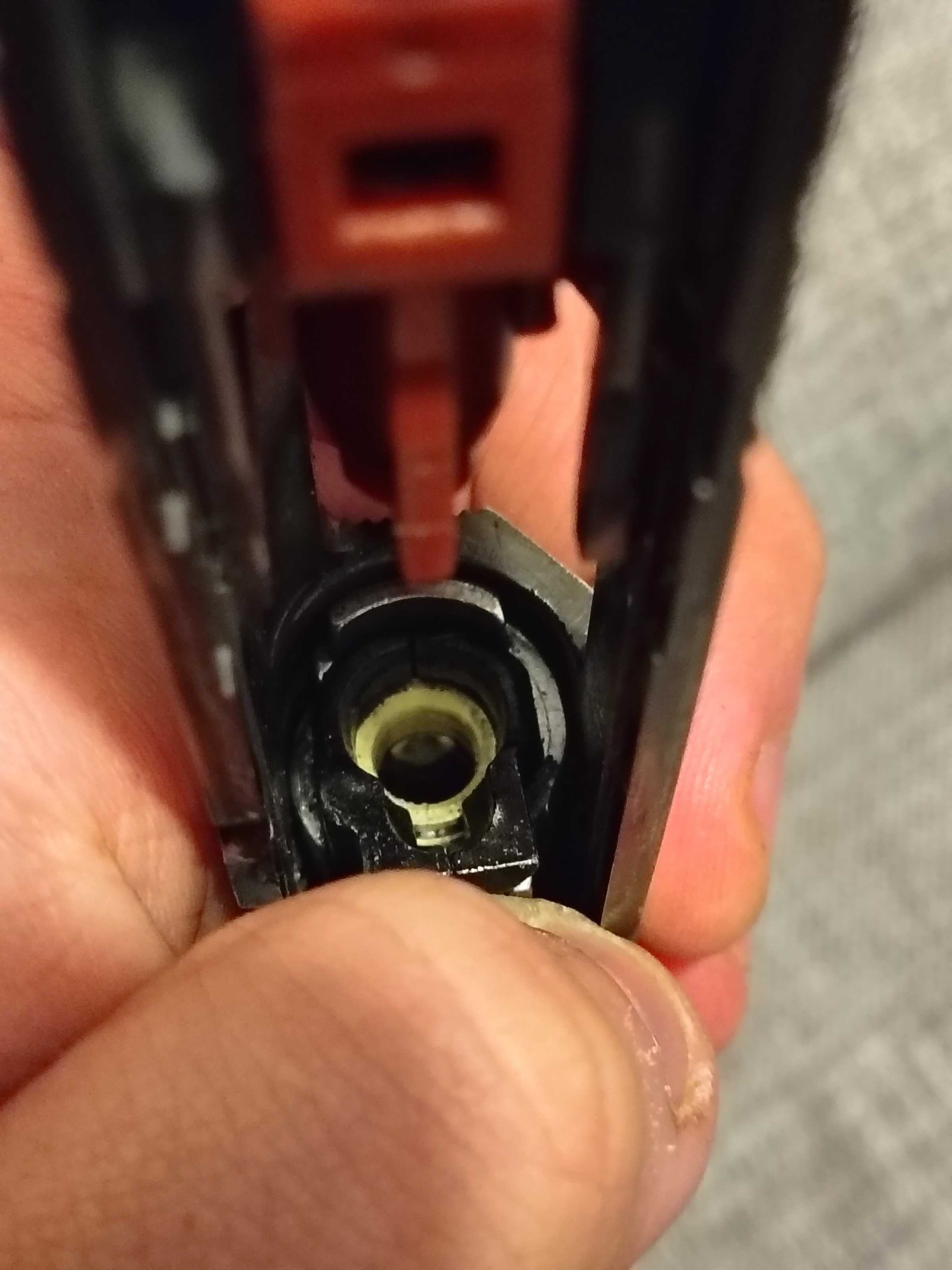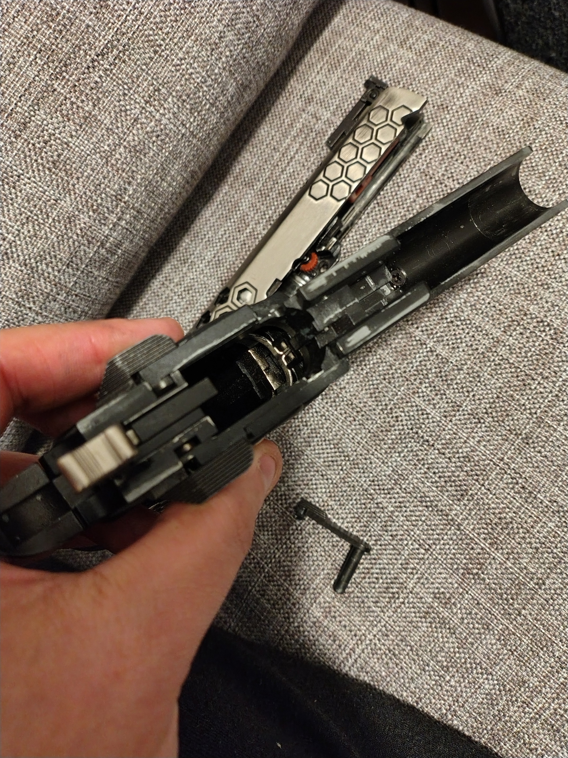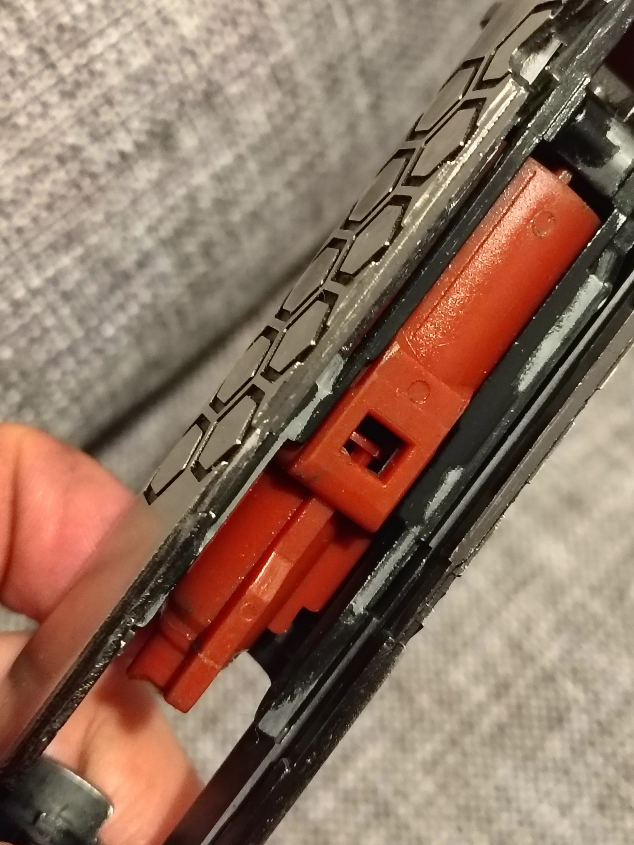 Une fois le rail placer impossible de arme la cuilasse arrière utiliser le chien pour arme  comme sur les autre model