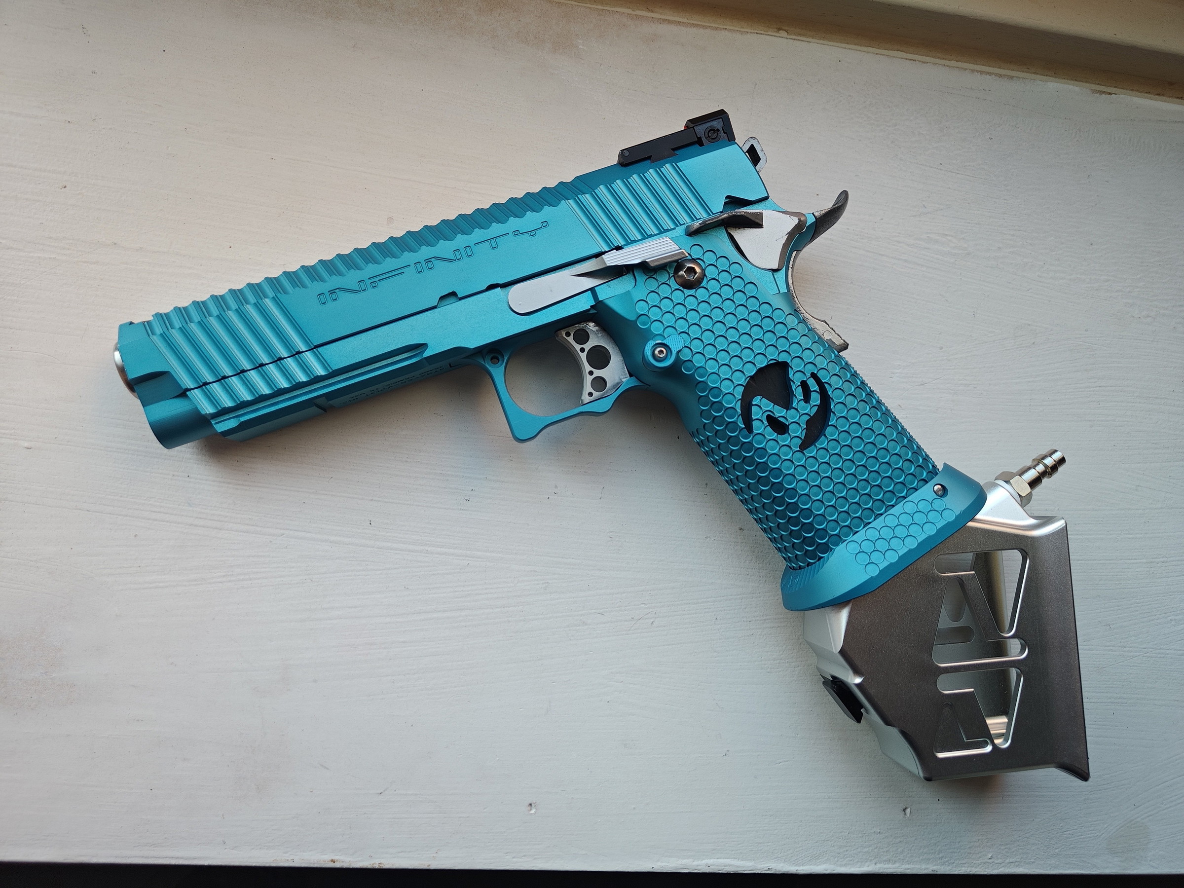De volledige build is custom geanodiseerd in een unieke kleur. Er bestaat dus geen 2e van deze Hi capa.
