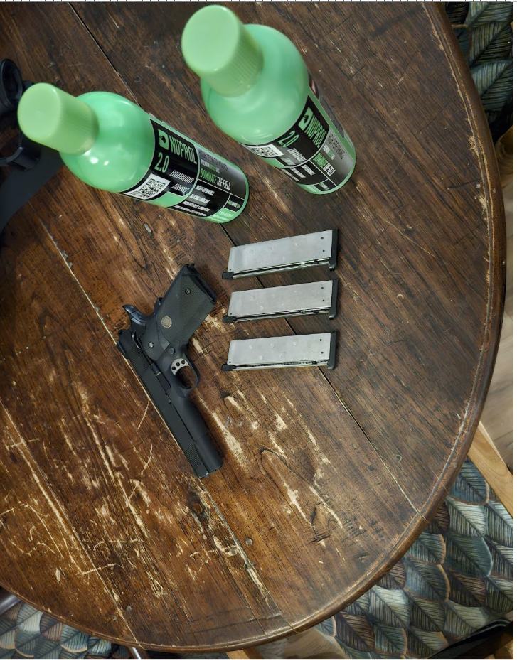 De WE1911 GBB  bevat 3 magazijnen en een nieuwe Co2 green gas fles bij om de magazijnen te vullen.
