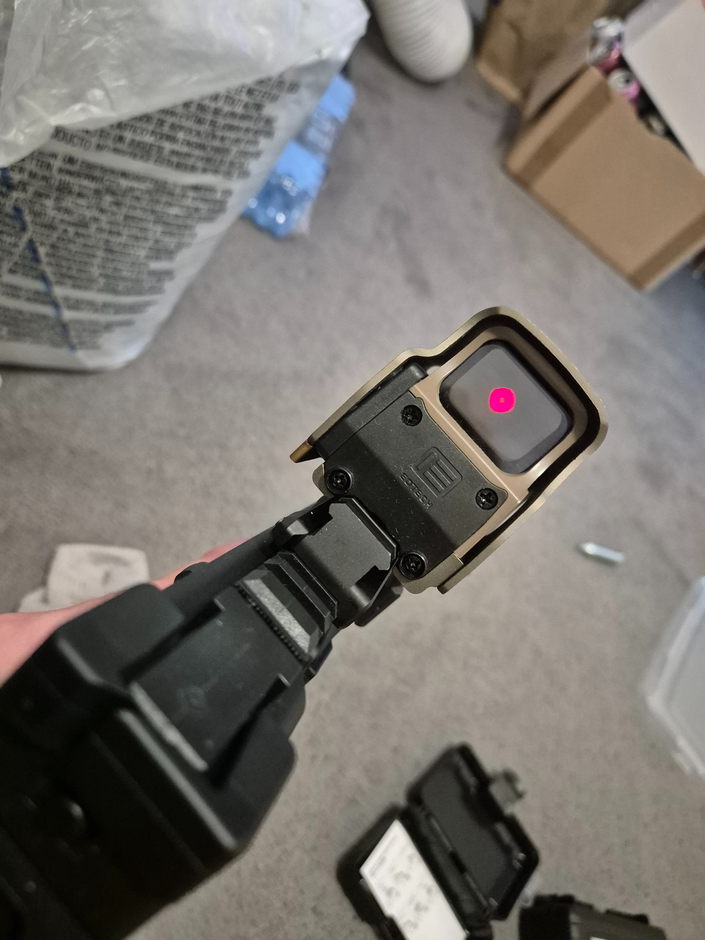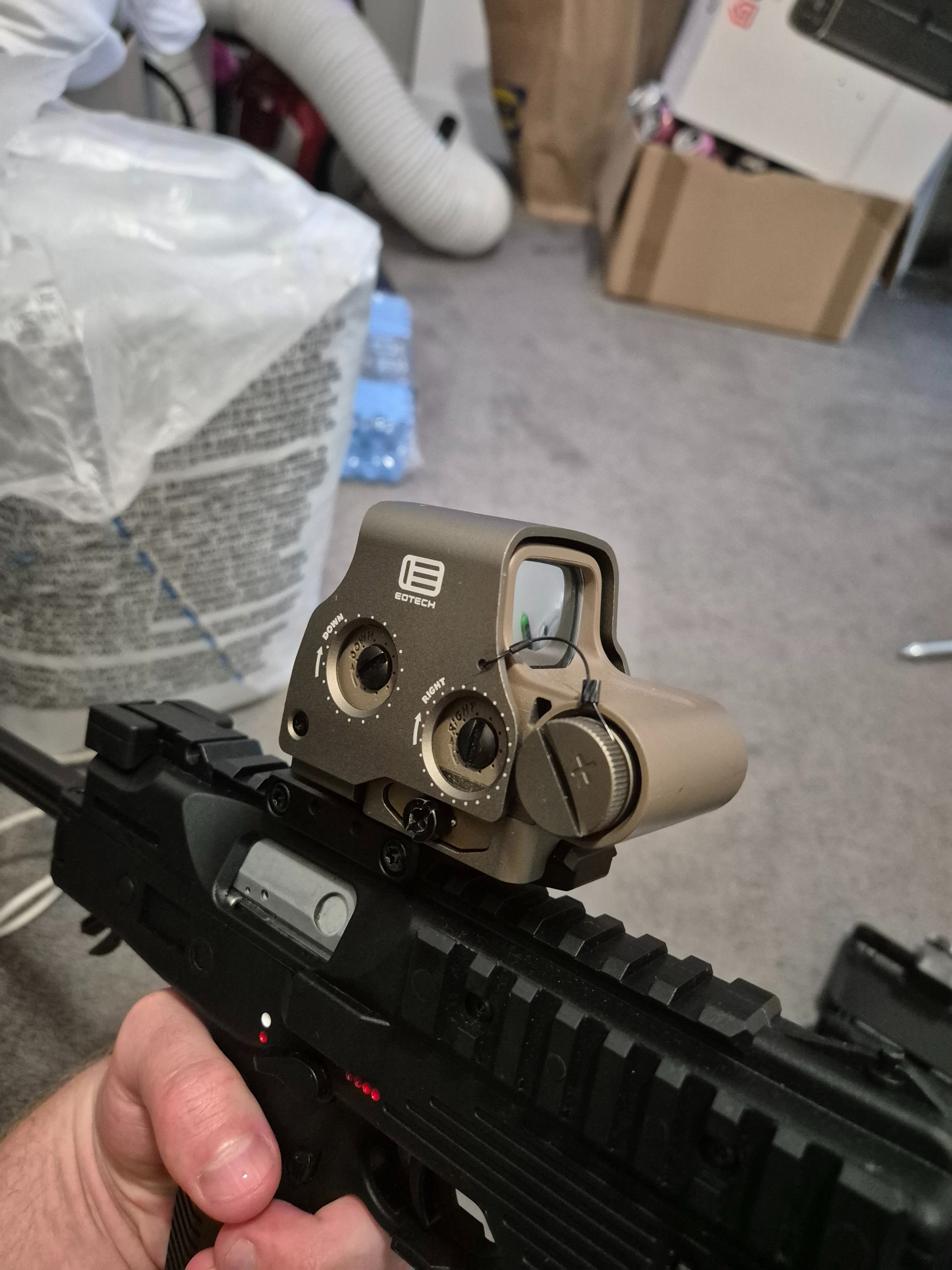 Staat bekend als de beste eotech clone op de markt. Is qua werking en kleur 1:1 met de echte variant. Komt incl unity fast riser. Heeft NVG modus en is terugslagbestendig.