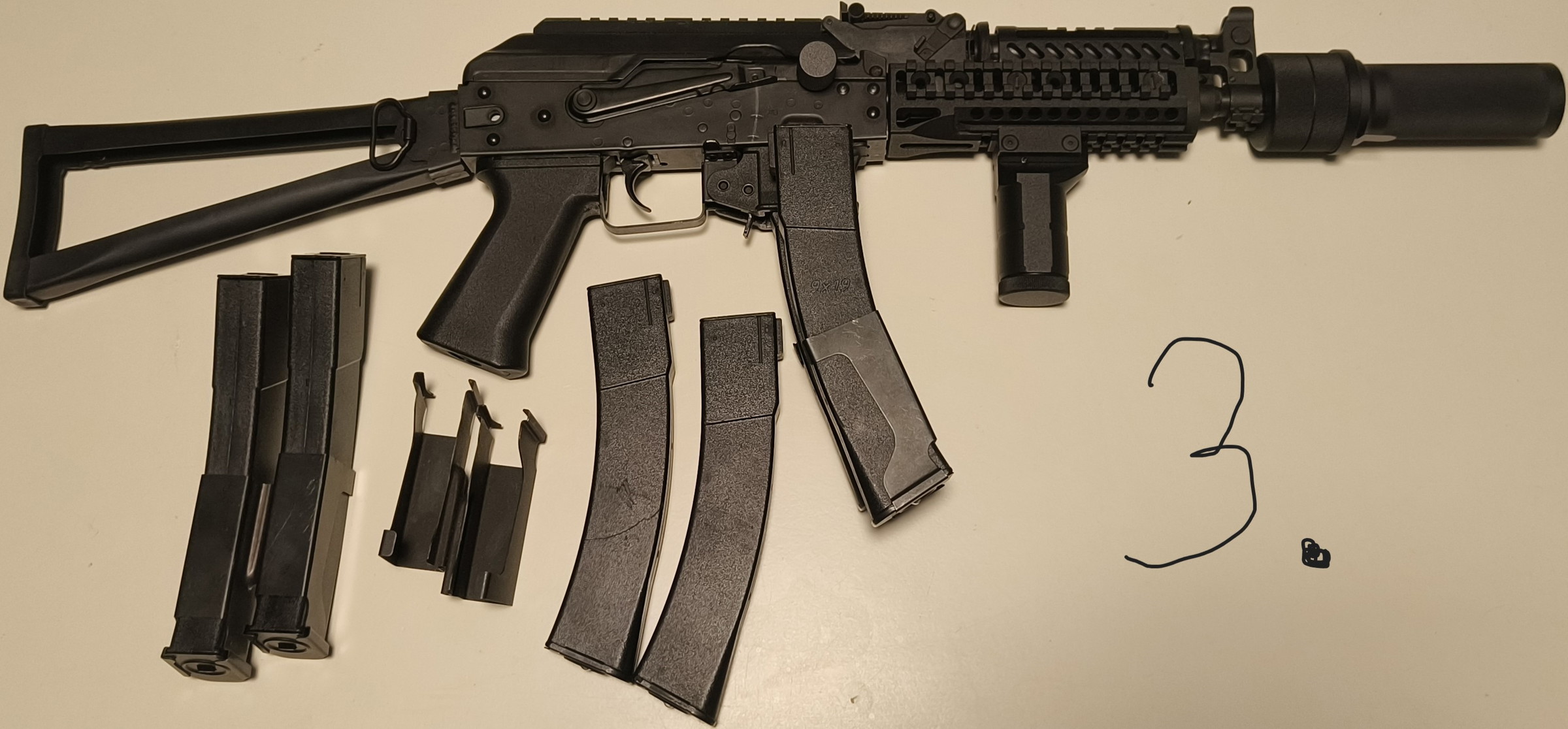 LCT PP19 VITYAZ AEG: replica is een AEG is vrij nieuw heeft altijd in de kast gestaan is een paar midcaps mee geschoten. Replica body, stock zijn gemaakt van staal stock kun je in en uit klappen alleen haakt deze niet aan door de nieuwe handguard van lct ook mist helaas de schroef van de front sight. pistol grip is gemaakt van polymeer lct pp19 handguard,mock supressor en foregrip zijn gemaakt van aluminium. De connector is een tamiya er zit een andere handguard dan de originele op hier zitten rails aan voor eventuele flashlight/laser en foregrip deze is ook aangepast aan de replica. replica heeft voor de rest stock onderdelen en is de gearbox ongeopend. replica komt met 6x midcaps van 50 rounds en met 3x magazijn koppelaar, foregrip en mock supressor.