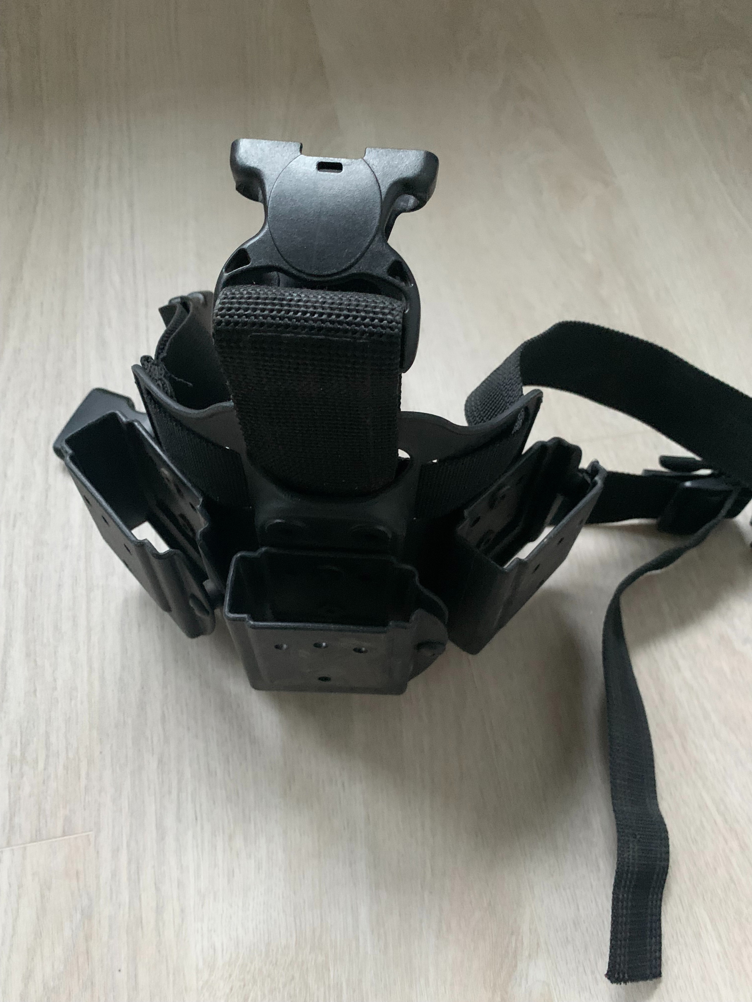 Zwarte magazine holder voor te monteren en de dragen aan het been. Is gemaakt van hard plastiek, ideaal als je mobiel wil werken zonder veel gerief rond je heup of borst.