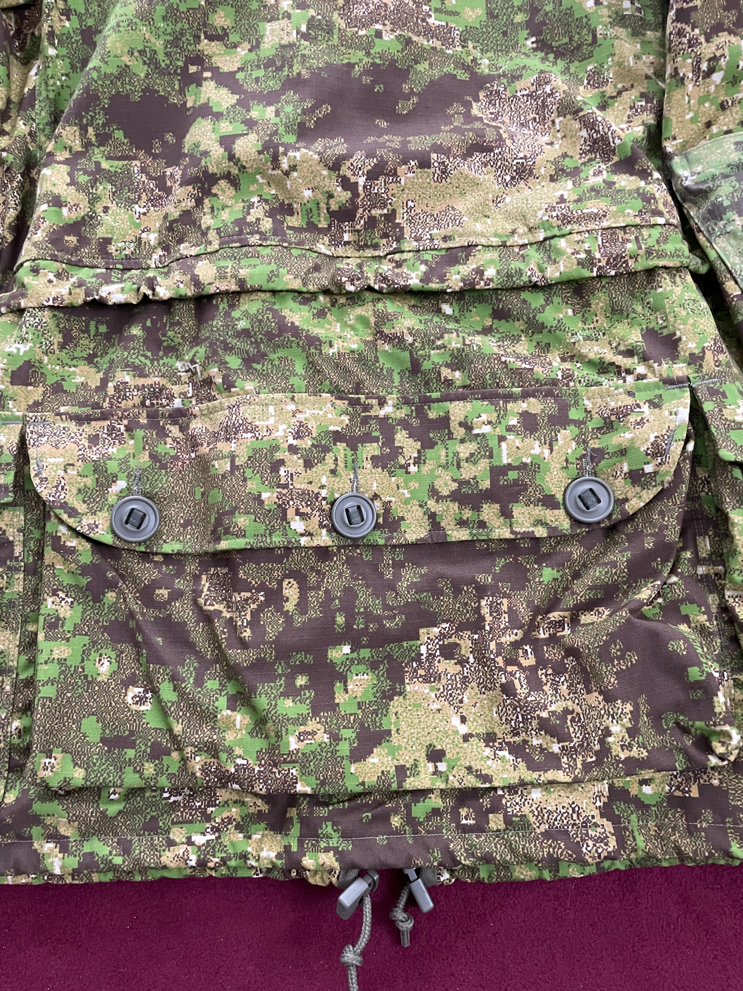 Die hochfunktionelle Leo Köhler KSK-Kampfjacke entspricht den Bundeswehr-TL-Standards. Sie zeichnet sich durch einen geraden, bequemen Schnitt, einen durchgehenden Zwei-Wege-Frontreißverschluss mit hoher Knopfleiste sowie Kordelzüge mit Stoppern an Taille und Bund aus. Die große Kapuze verfügt über einen Kordelzug mit Stoppern und einen integrierten Drahtbügel zur Anpassung des Sichtfelds. Zahlreiche Außen- und Innentaschen bieten viel Stauraum für persönliche Ausrüstung.