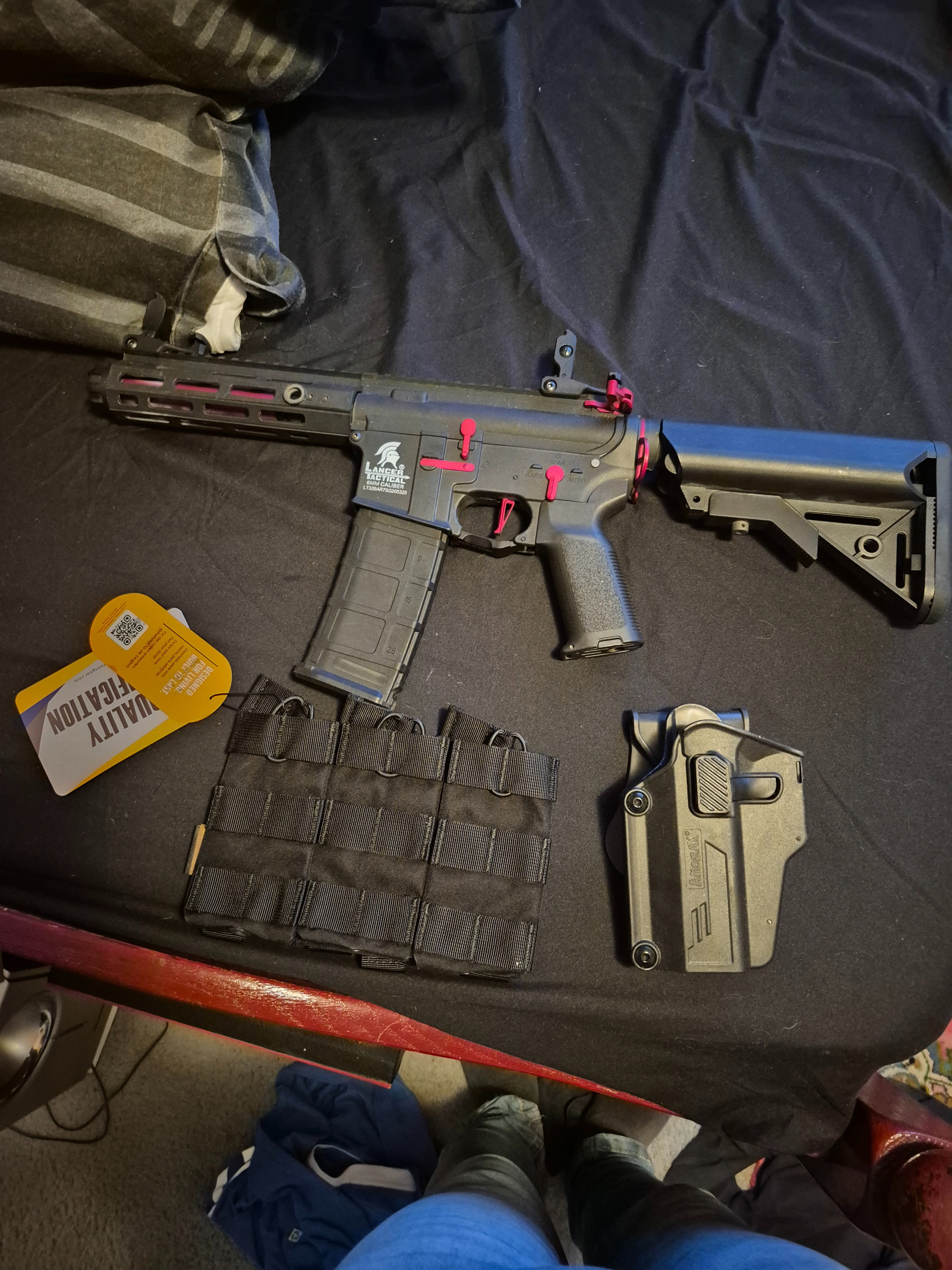 Wel zitten er 3 vlammetje nieuwe mag pouches bij! en een pistol holster voor je secondary , komt met 1 mag