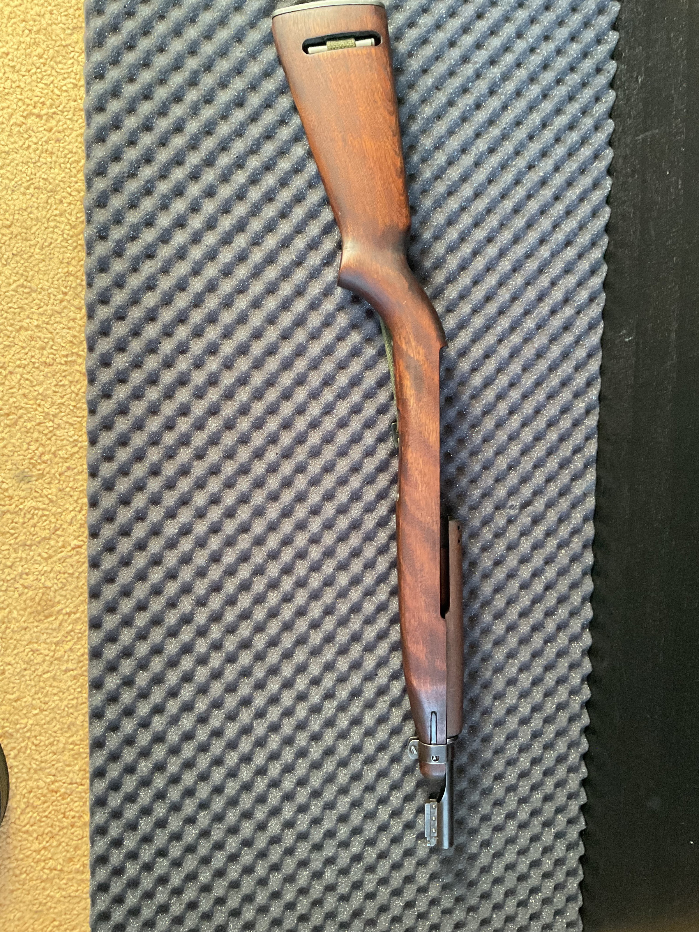 De kolf is plastic, eventueel voor meerprijs een echte houten kolf. Wilde deze pasmaken en plaatsen is echter nooit iets van gekomen