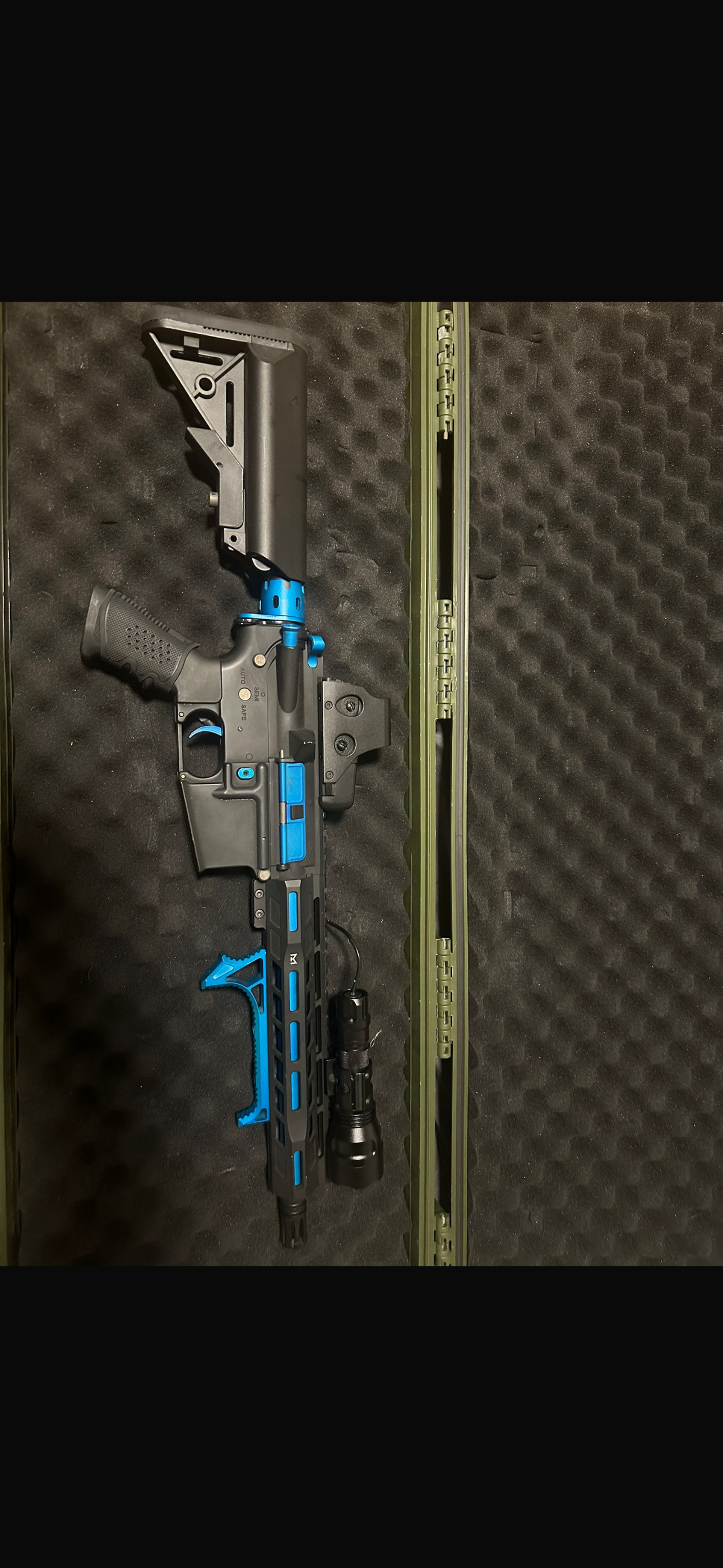 Airsoft submachine gun Cybergun Colt M4 Hornet Blue Fox Ed AEG Full Metal. In prima staat geen upgrades gedaan Incl. RAM scope en flash.