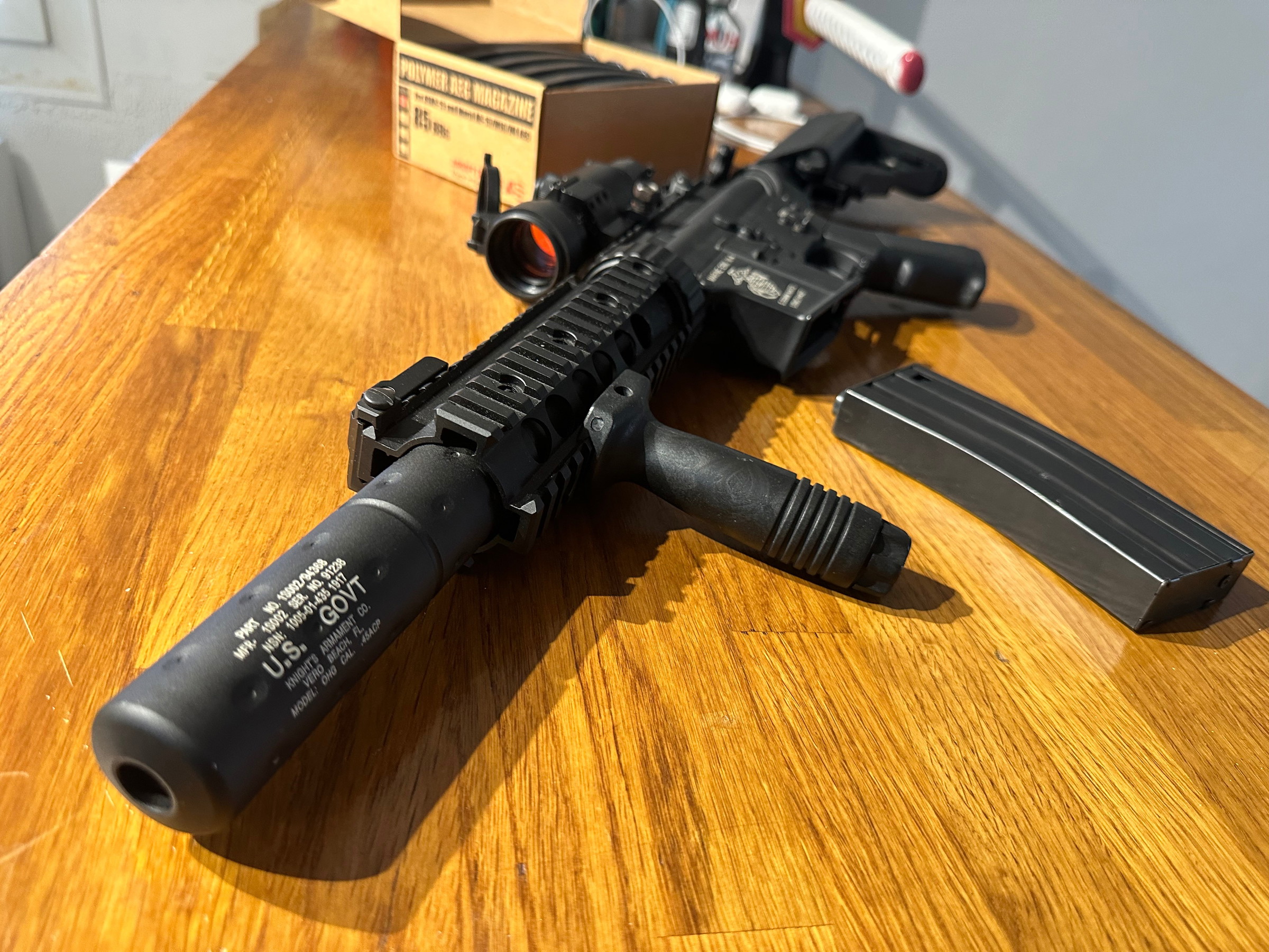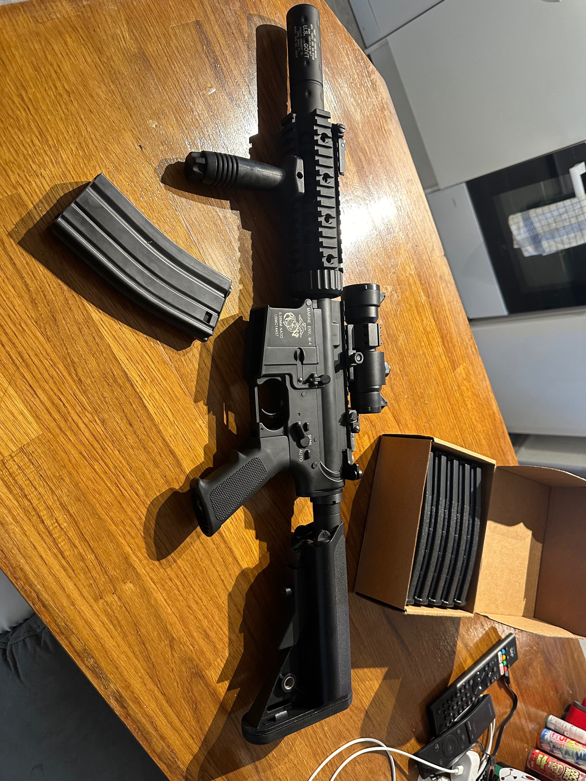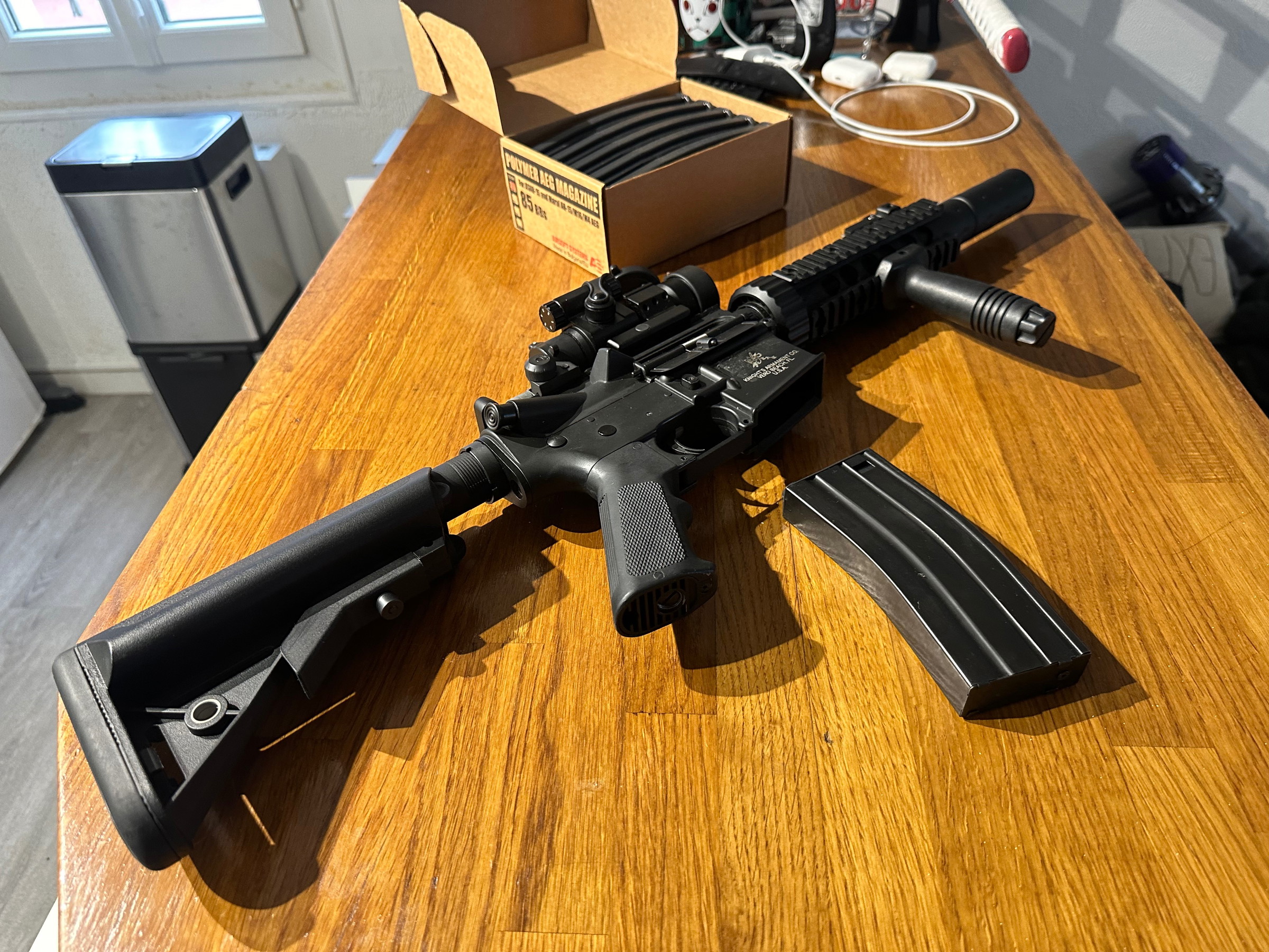 Je vends une réplique d’airsoft M4 édition Marine, marque G&P.