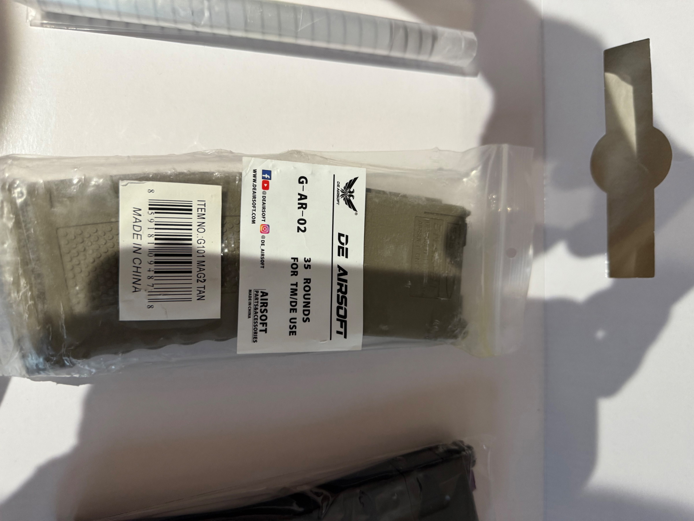 2 mags (1 standaard meegeleverd met de replica + een extra FDE mag . M-Mag Gas Magazine 35 BBs for M4 MWS GBB - Dark Earth - Double Eagle)