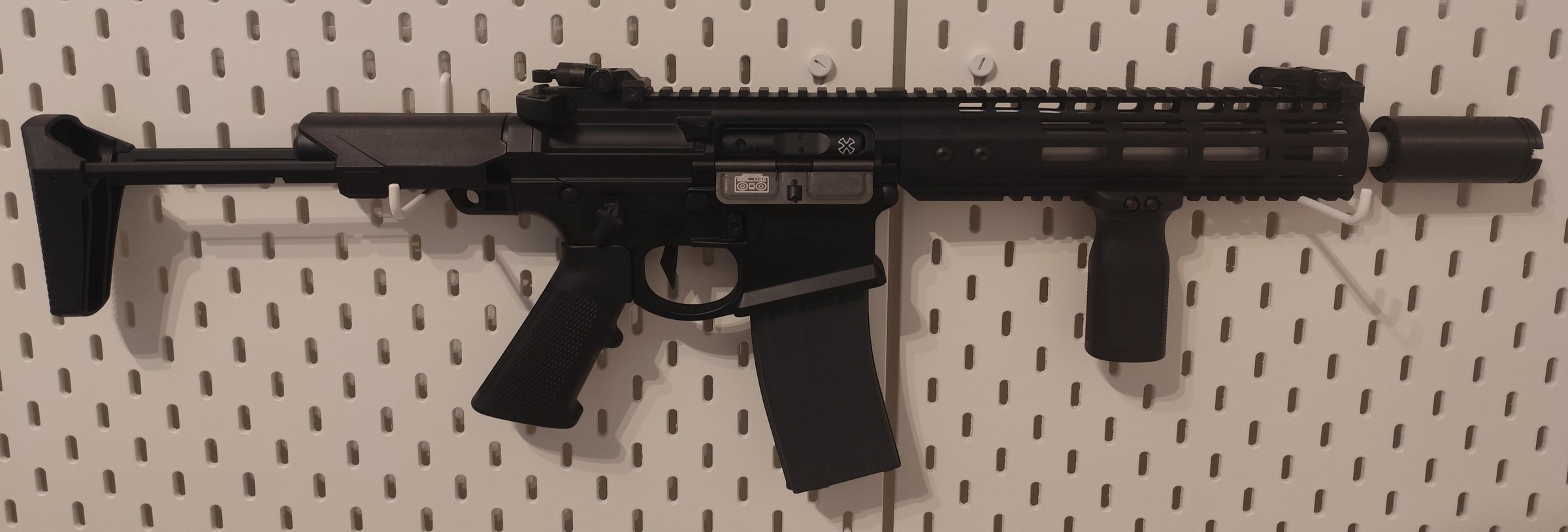 Noveske n4 ghetto blaster 10 inch, het heeft een nieuwe nozzle en een NPAS van federal concepts waarmee je de fps van de replica kan aanpassen, bovendien is de bucking veranderd met een bucking van 4uad, hierdoor heeft de replica zeer goede range en accuracy. De replica is enkel getest en heeft geen enkele skirm gezien. Komt met 1 magazijn.