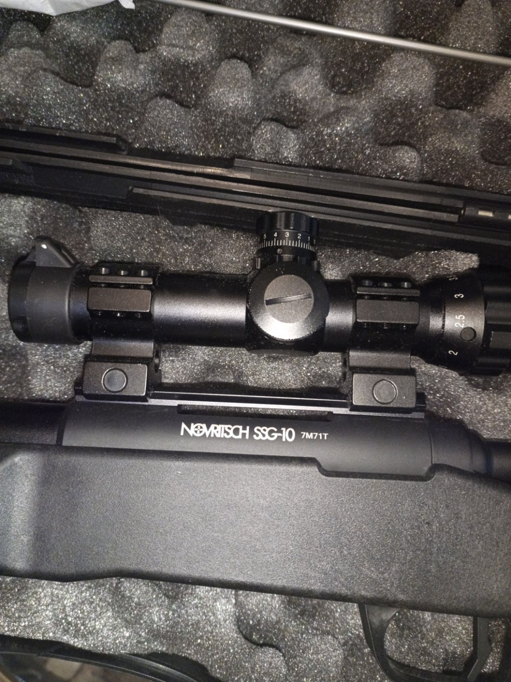gebraucht neuwertig Novritsch SSG-10 A2 7M71T Airsoft Scharfschützengewehr mit Zielfernrohr Strike System 1-4X24E, stärkere Feder Spring M220, SSG10 Magazin, Speedloader