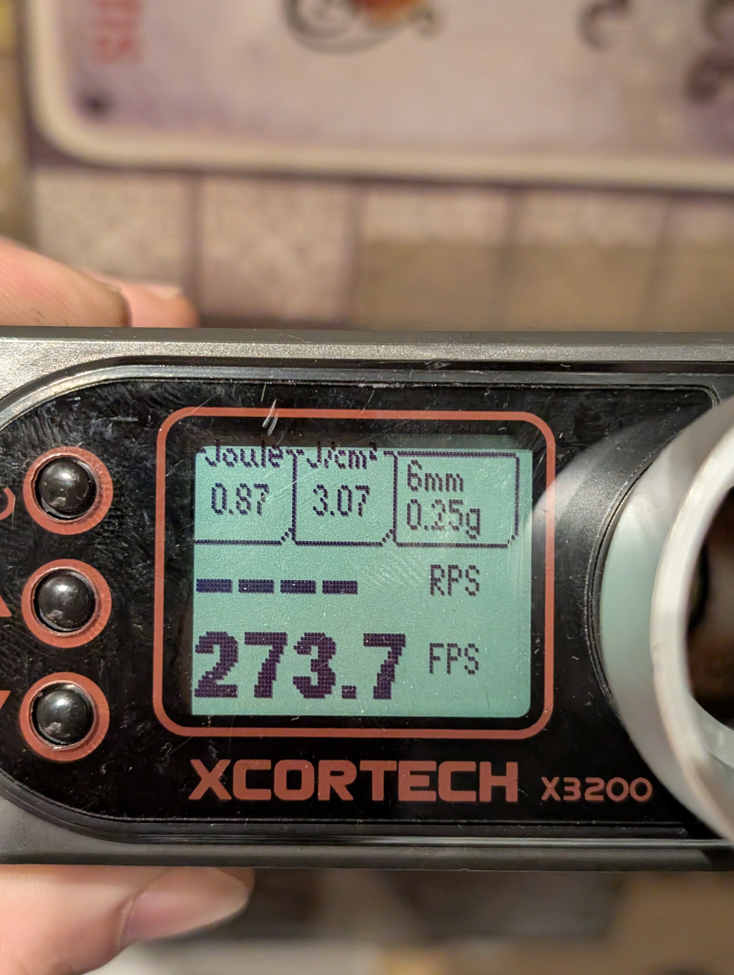 0.87J with 0.25 BBS, well-maintained, lubed, signs of use, working without any problems.