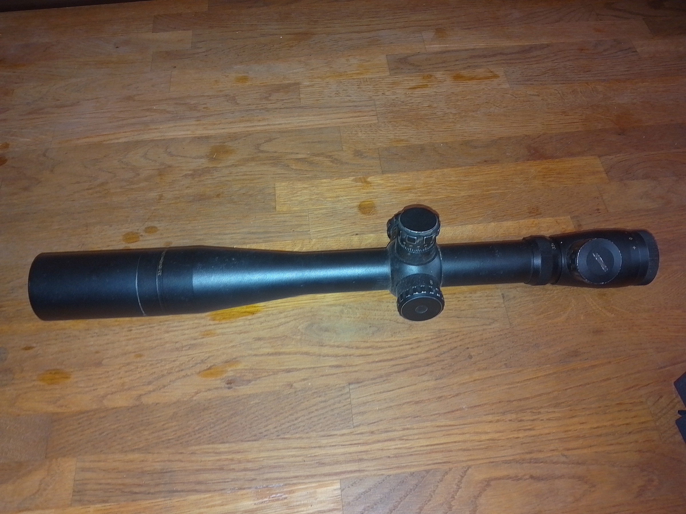 Scope met sunshade, totem voor voor verlichting licht beschadigd, zit wat los, functioneerd wel.