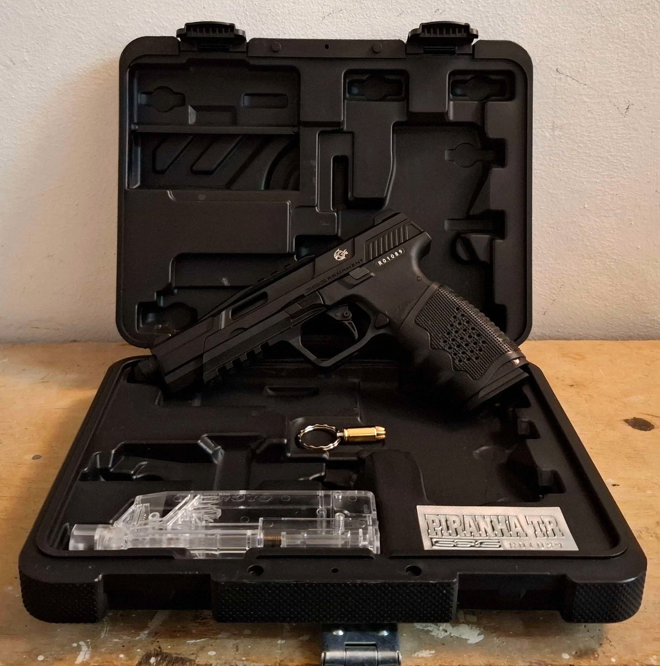 Komt in de (orignele) harcdase, inclusief bijbehorende speedloader en hop adjustment tool.