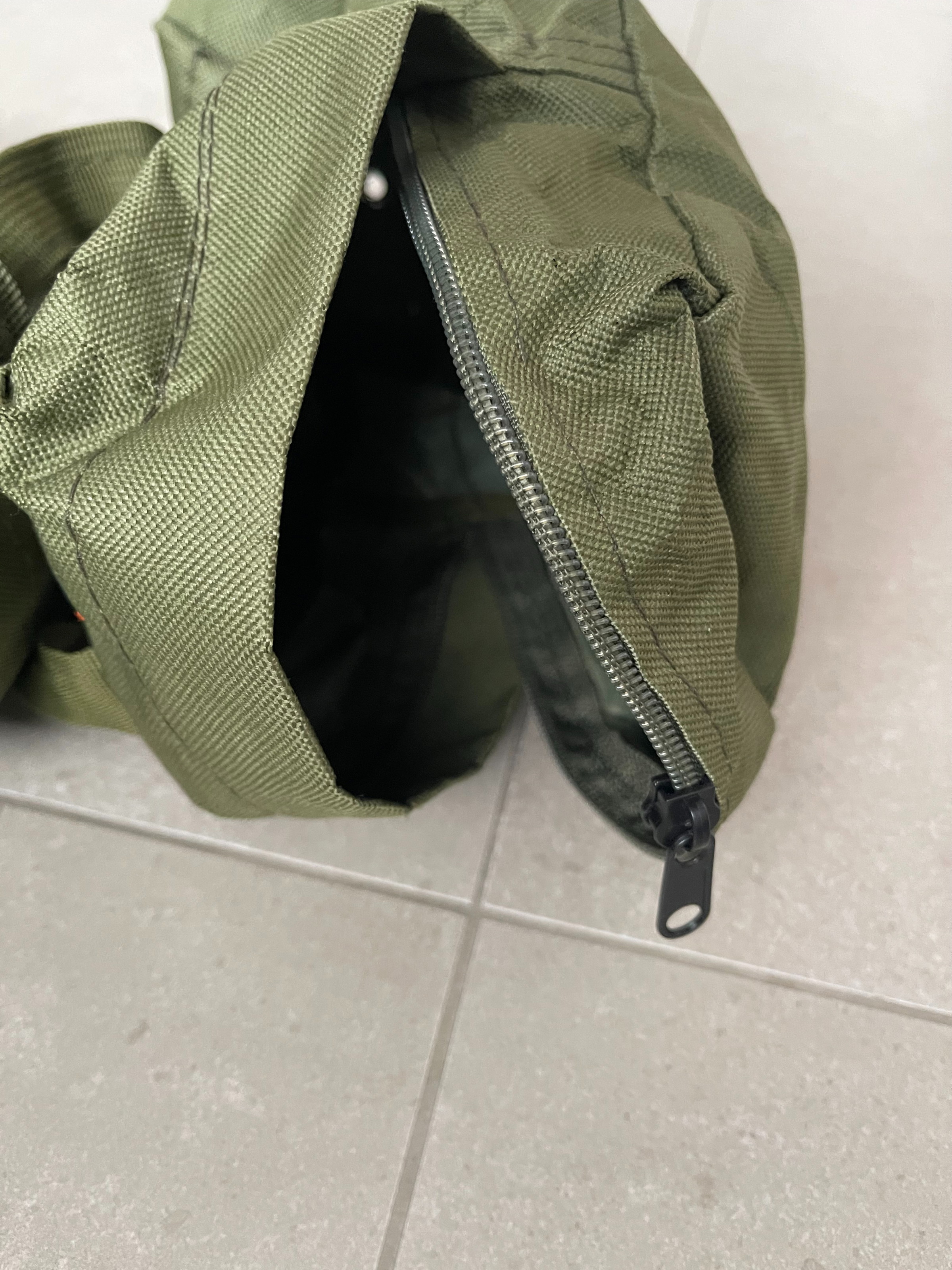 De rits van de pouch is los, moet er weer even in gemaakt worden.