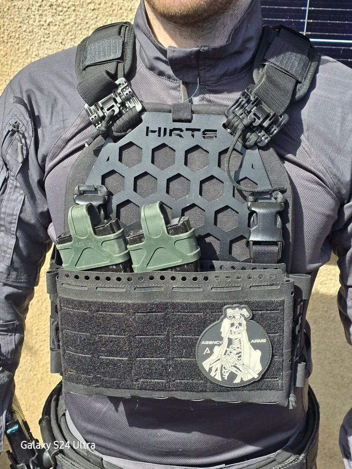 Il est possible d’enlever le velcro pour installer du MOLLE. On peut bien évidemment changer les plaques : elles se décrochent pour en mettre des vraies ou d’autres modèles.