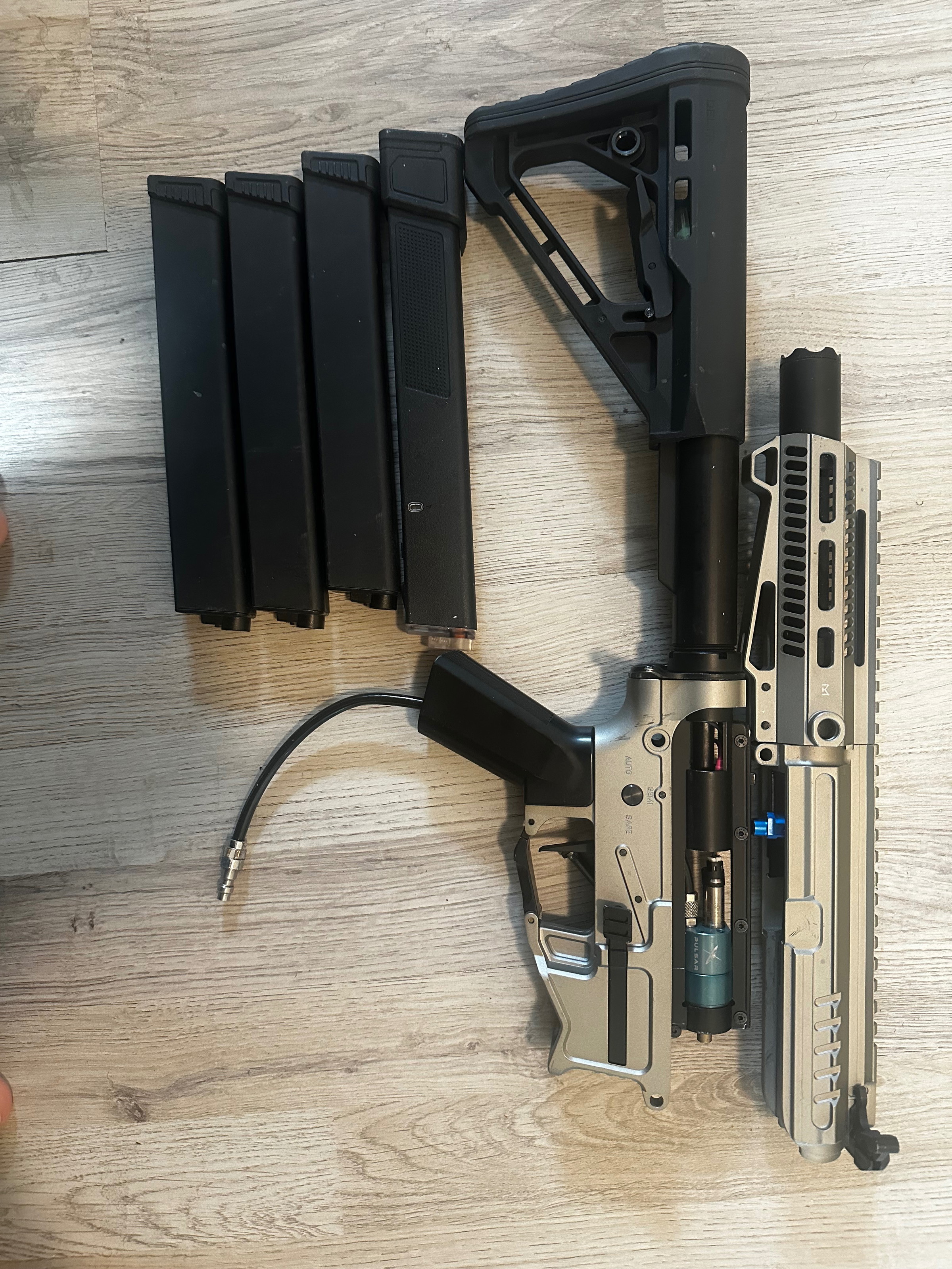 Hierbij verkoop ik mijn Zion Arms Mod 1 (zilver editie).  Hij is volledig omgebouwd naar HPA met de Gate Pulsar S engine en Aster ll mosfet (inbegrepen bluetooth) met quantum trigger. Schiet lekker snel en makkelijk te tunen via de Gate GCS App. De mosfet maakt gebruik van normale deans connector voor 7.4v Lipo (net als de gene voor je AEG met deans, geen speciale HPA batterij voor nodig).