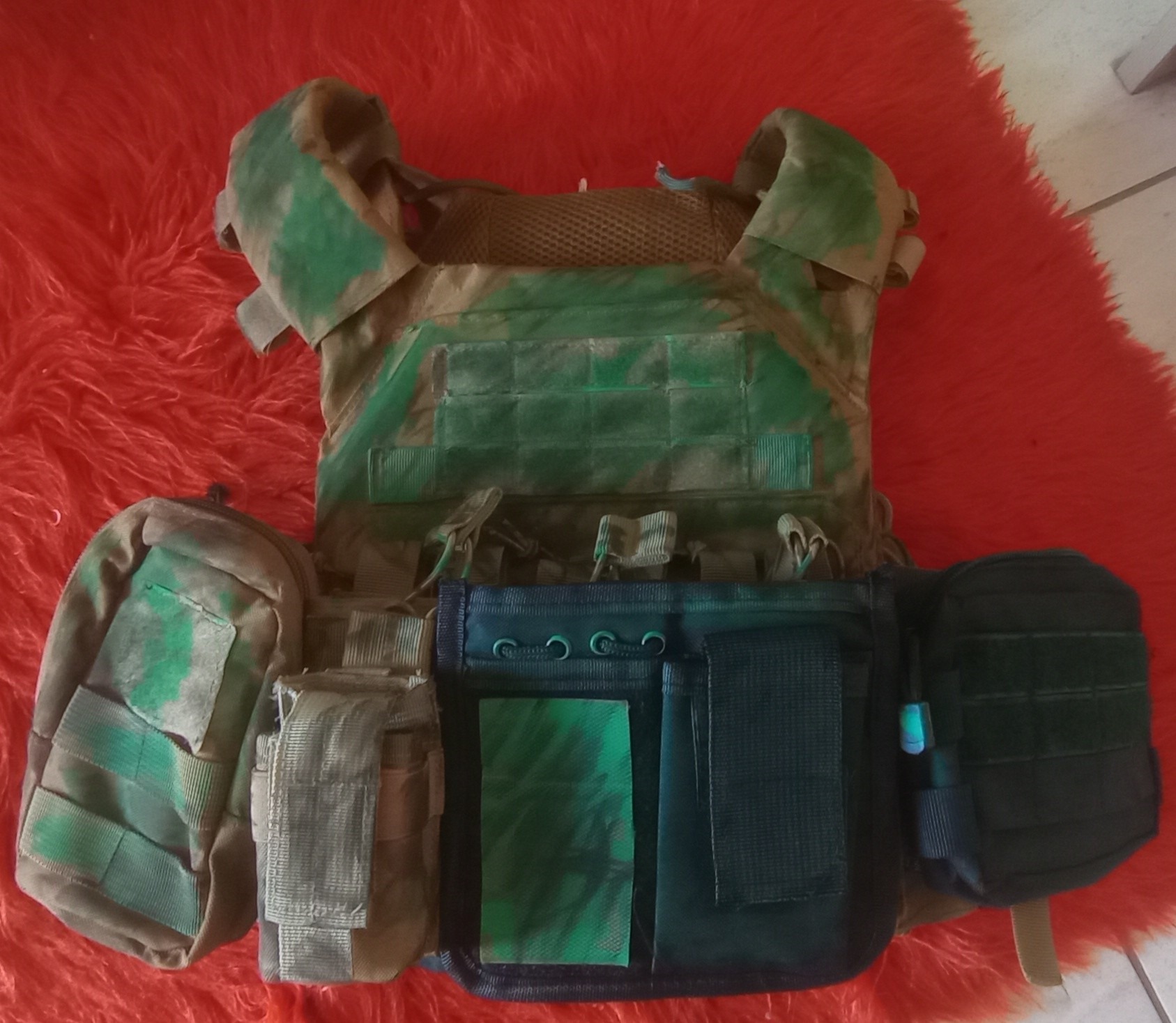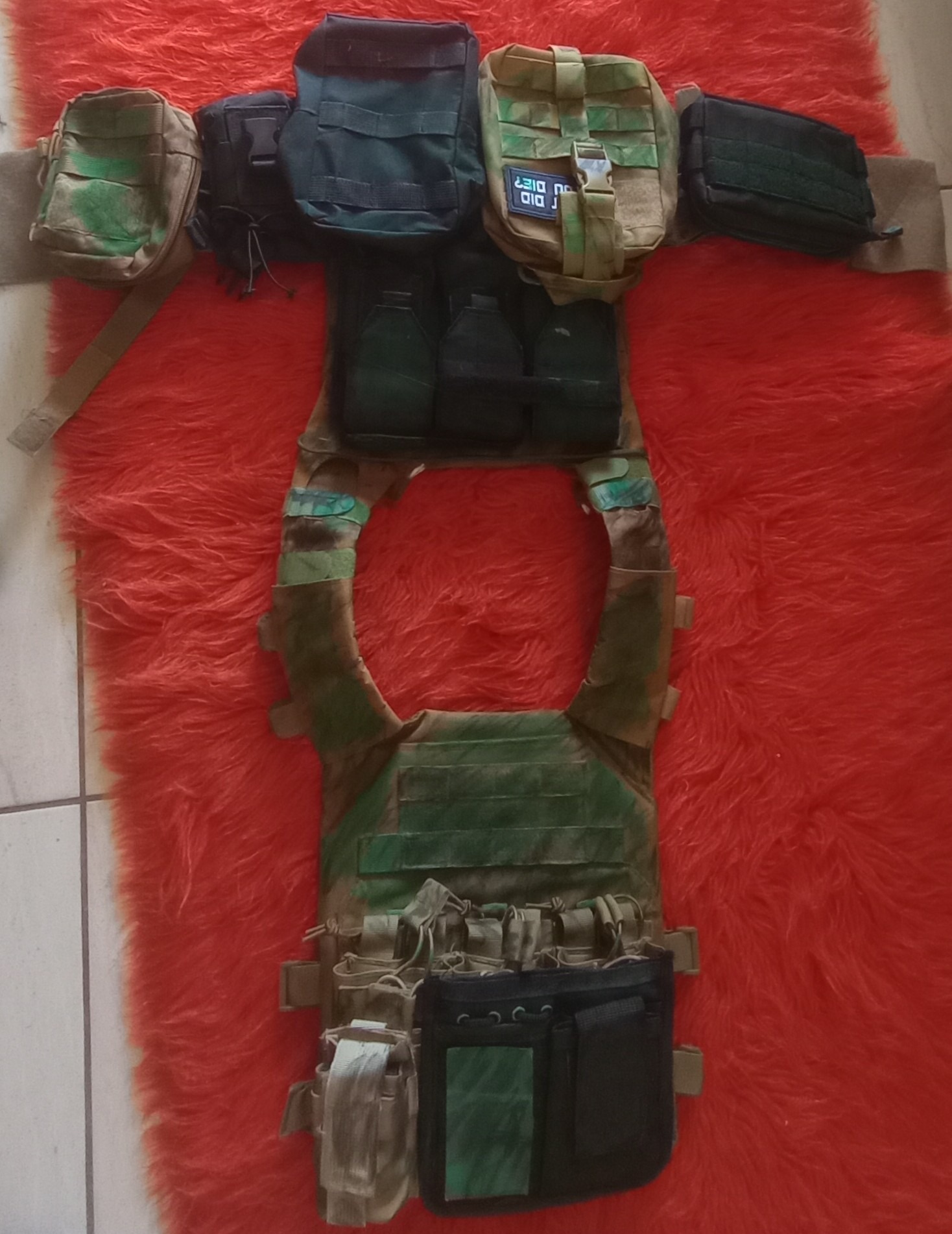 ° two lower back pouches,one medic one one black dump pouch(zipper is kinda dead)