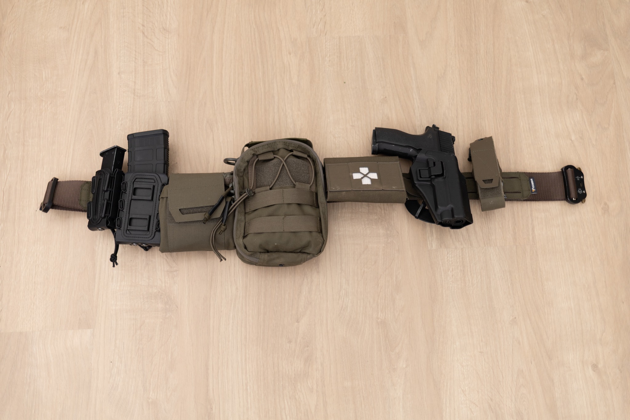 • Idogear outerbelt inclusief alle pouches, maar exclusief pistol holster!