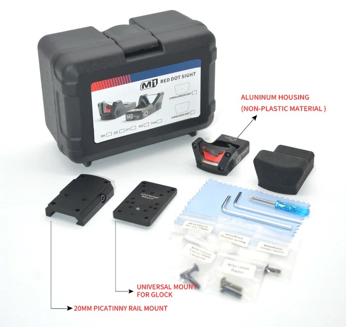 Epische en functionele volledig metalen red dot richtkijker met een meegeleverde Glock-montage voor snelle doelacquisitie en precieze schoten.