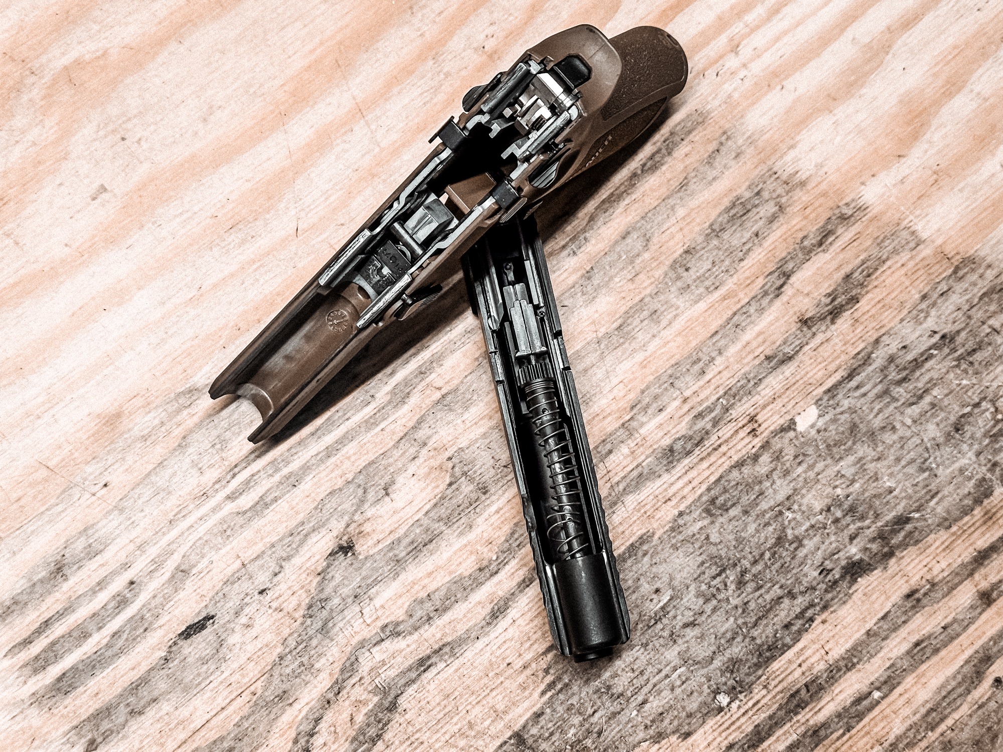 Slede loopt wat stroef. Schiet nog wel, maar net een tikkel trager dan dat ie normaal zou doen. Heb 't al kunnen verhelpen voor een stuk, maar 100% in orde krijg ik het niet.