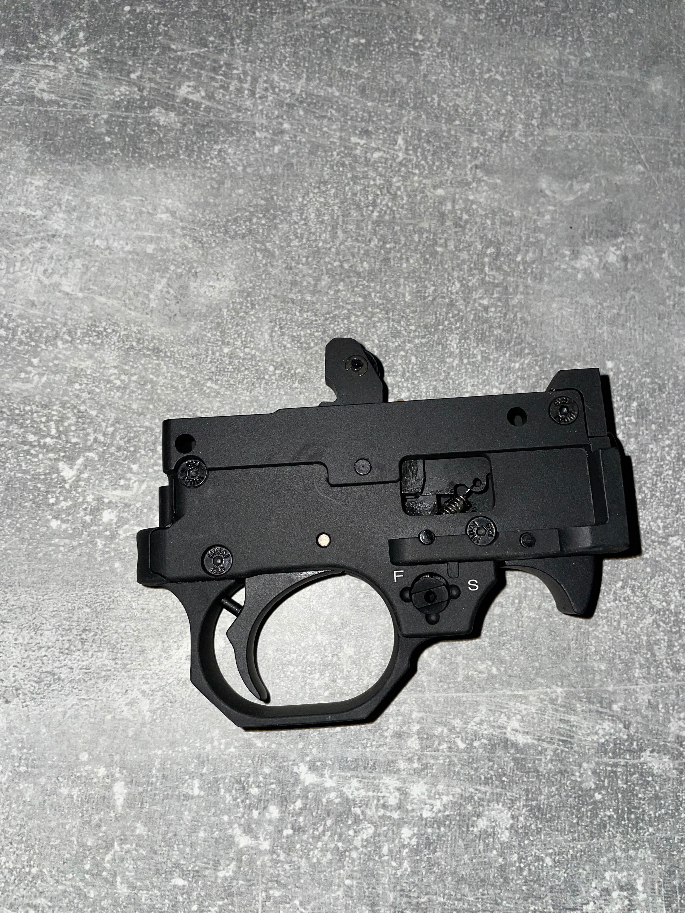 Omdat ze vaak out of stock zijn had ik een boel reserve onderdelen gekocht. Na de verkoop van de ssq22 kwam ik de trigger unit nog tegen. Dit is de laatste versie met versterkte sears en nieuwe mag release.
