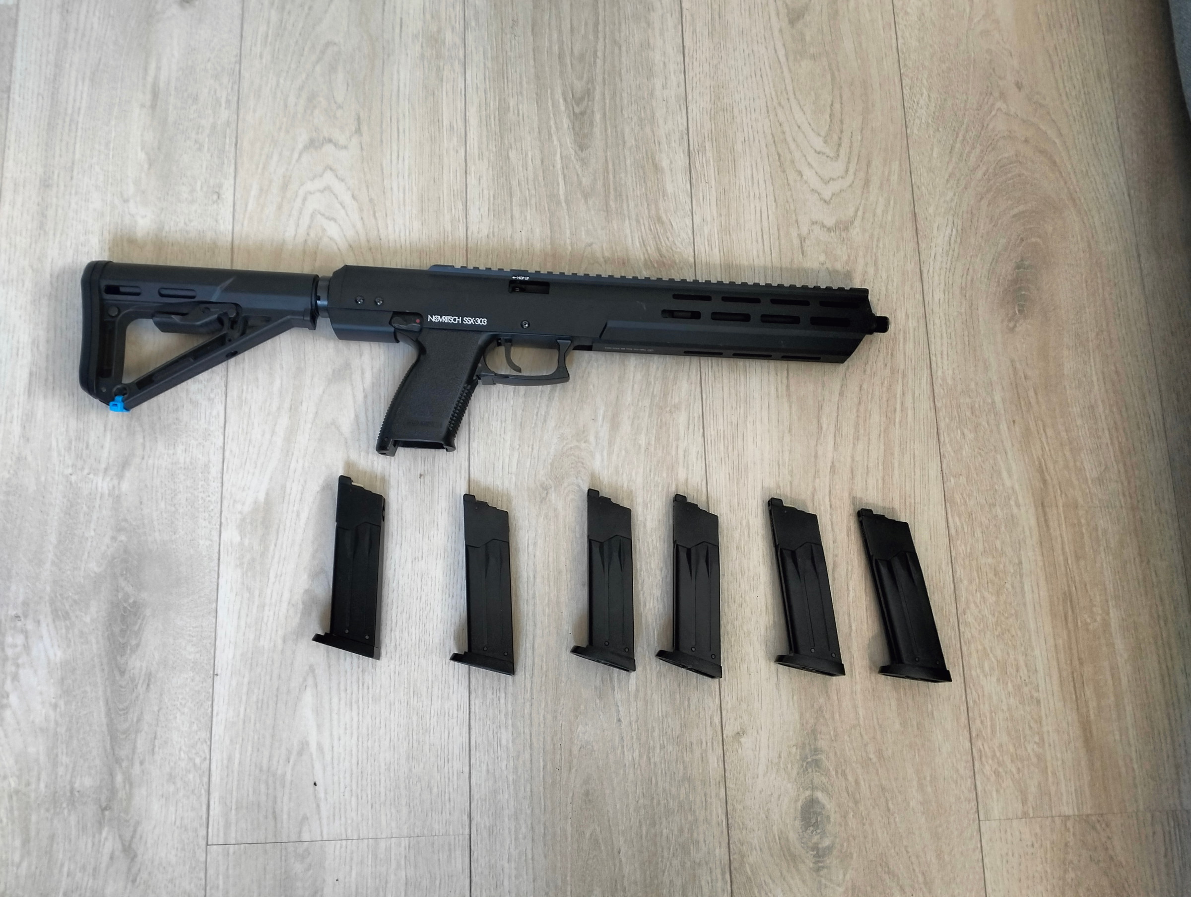 Mooie ssx-303. Heeft wat gebruikerssporen maar heeft amper het veld gezien. Komt met 7 lekvrije magazijnen en nozzle set om de fps aan te passen. Orginele doos is aanwezig.