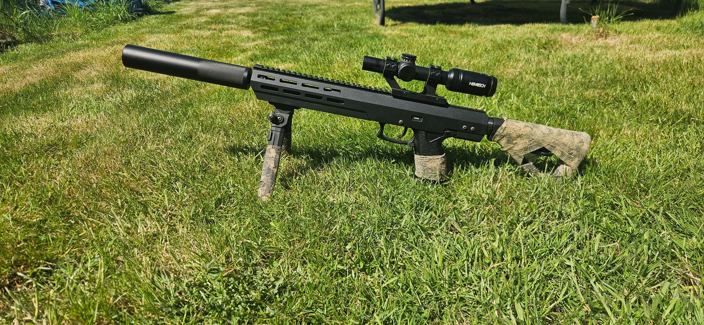 - ssx303 met novritsch scope, demper en 2 magazijnen. Magazijnen lekken lichtjes dus de seals zouden eens nagekeken moeten worden. Eventueel tegen meerprijs een hpa systeem met m4 magazijnen beschikbaar.