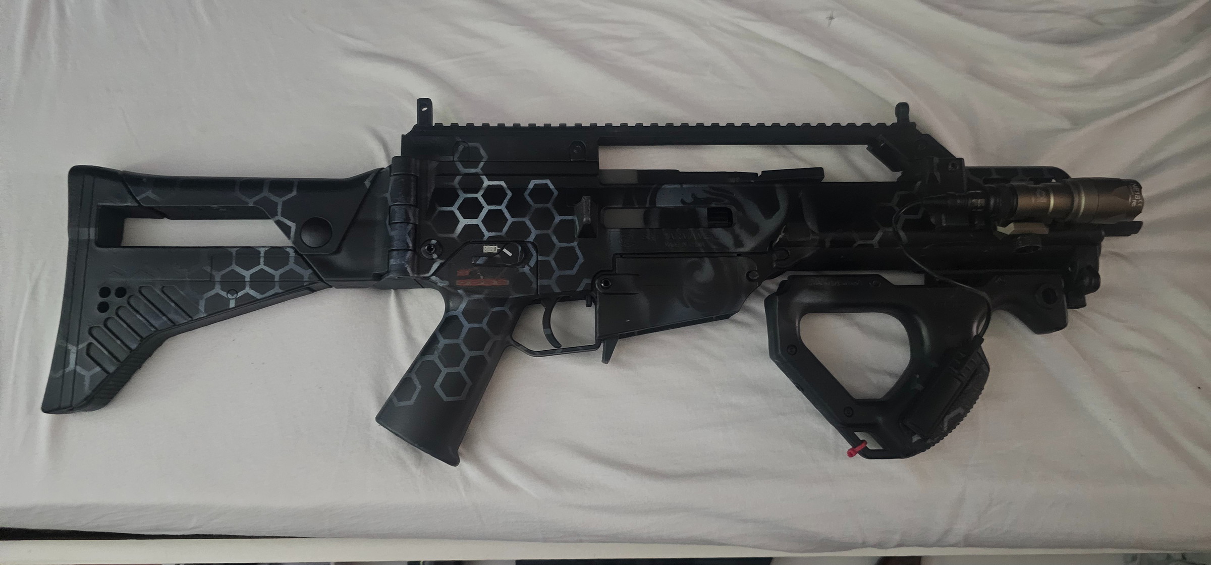 Hierbij verkoop ik mijn S&T G36 met electric blow back. Ik verkoop de replica omdat ik deze niet meer gebruik door dat ik de overstap naar hpa heb gemaakt. De replica is door me zelf ge spray paint. Replica schiet 1.15 joules en is skirm ready.