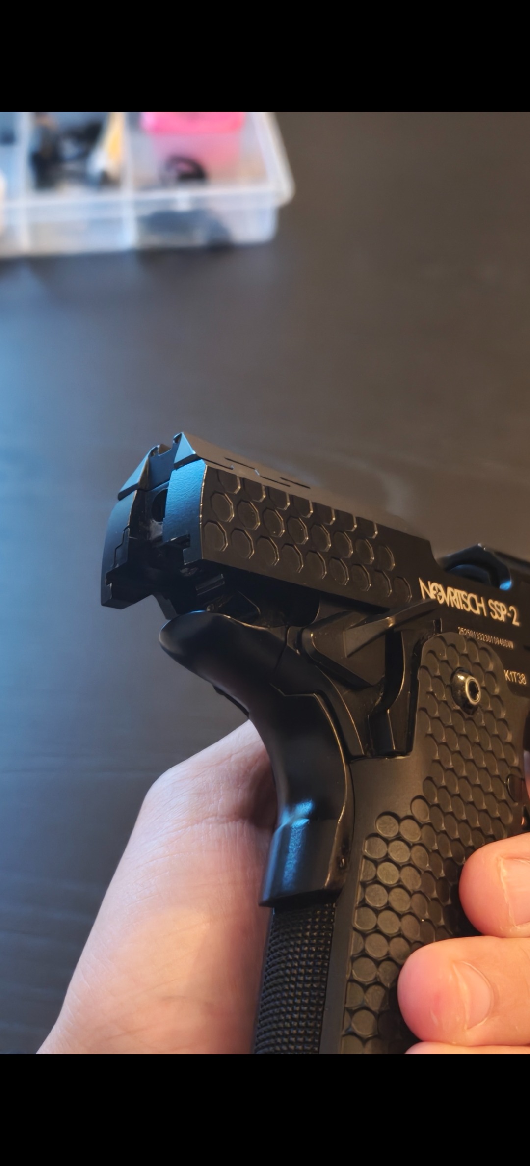 Ik vermoed dat er iets is met de blowback unit, of hamer. Die schuift tegen de blowbackunit aan waardoor hij niet heen en weer gaat.