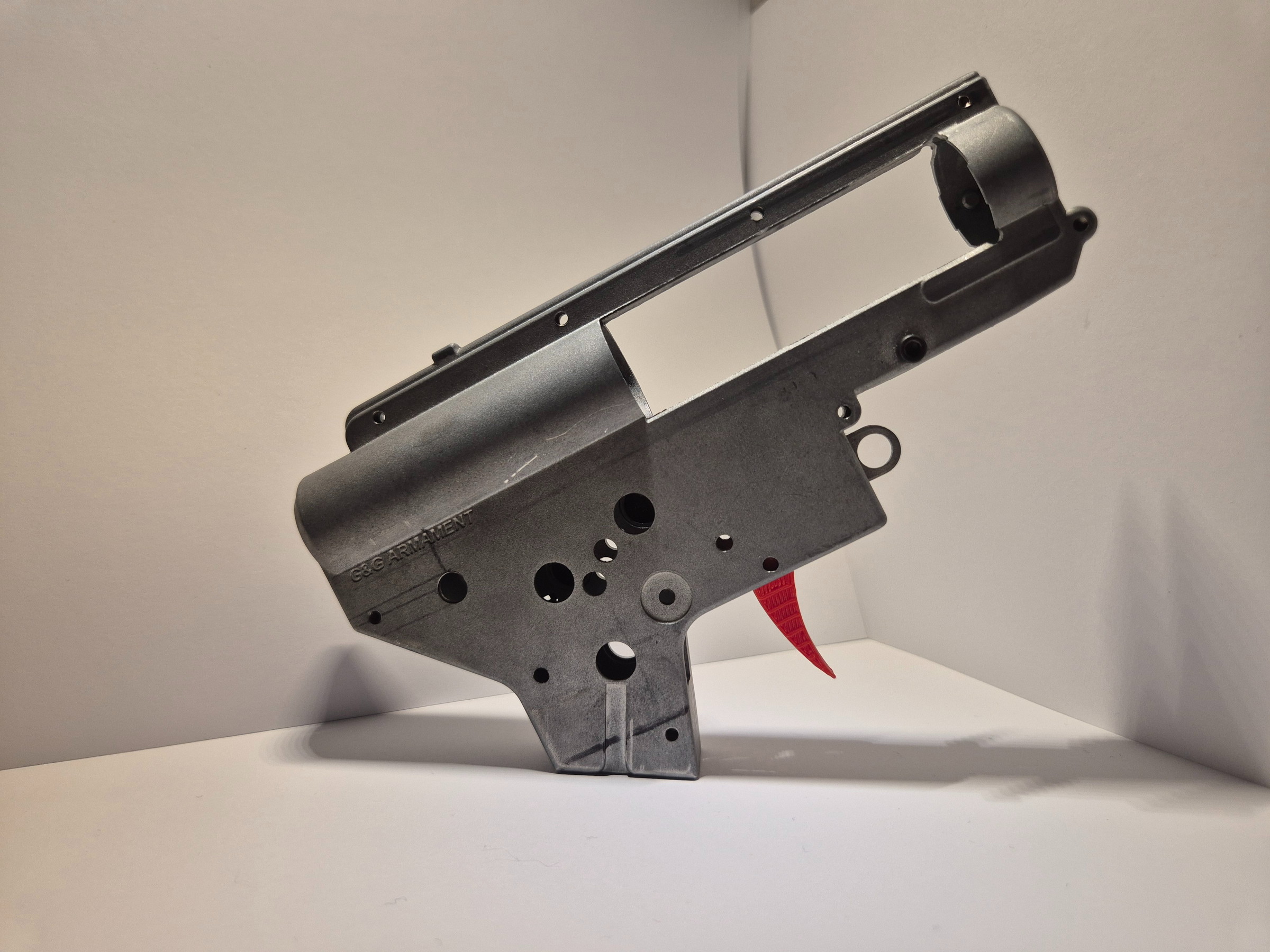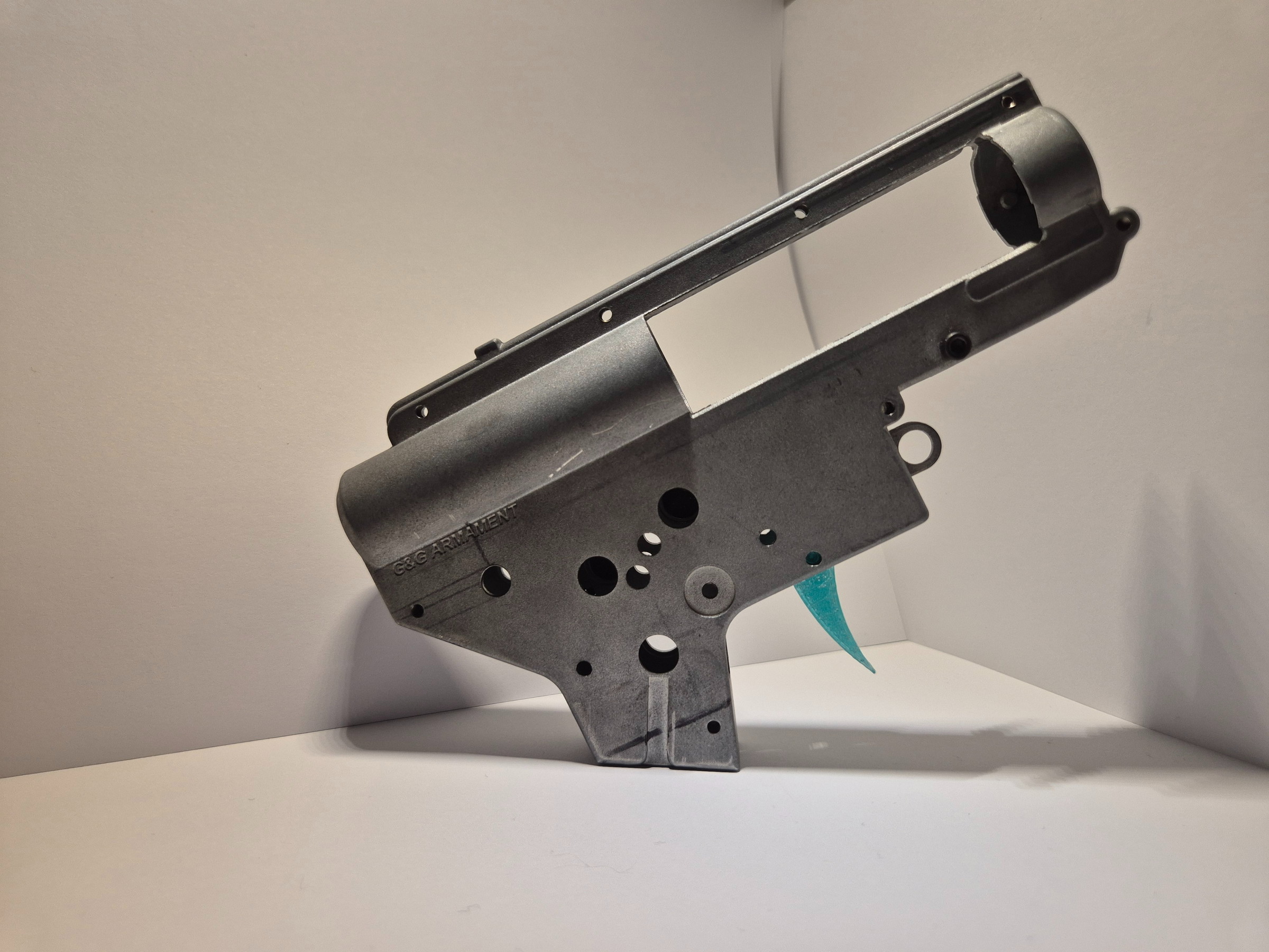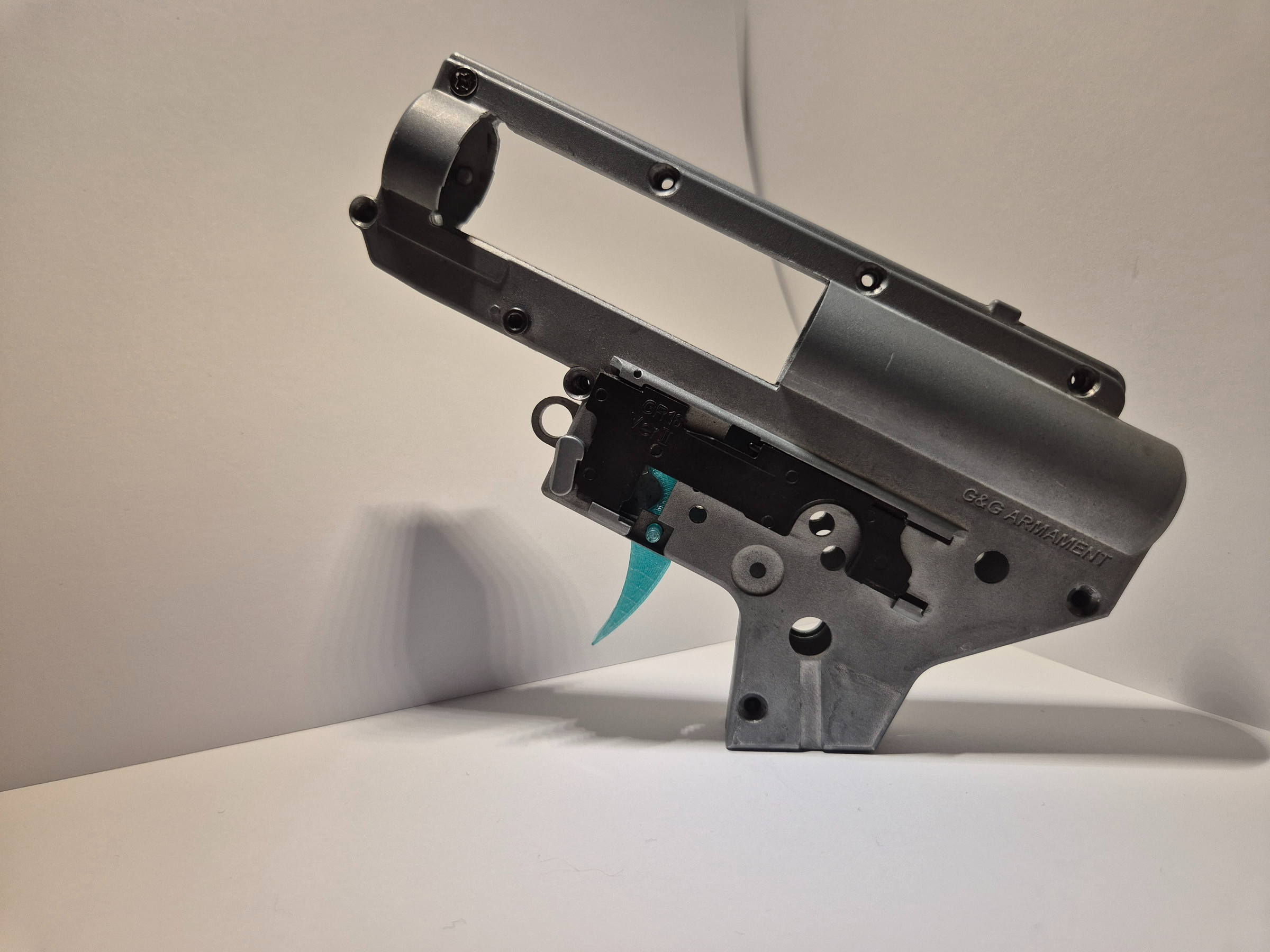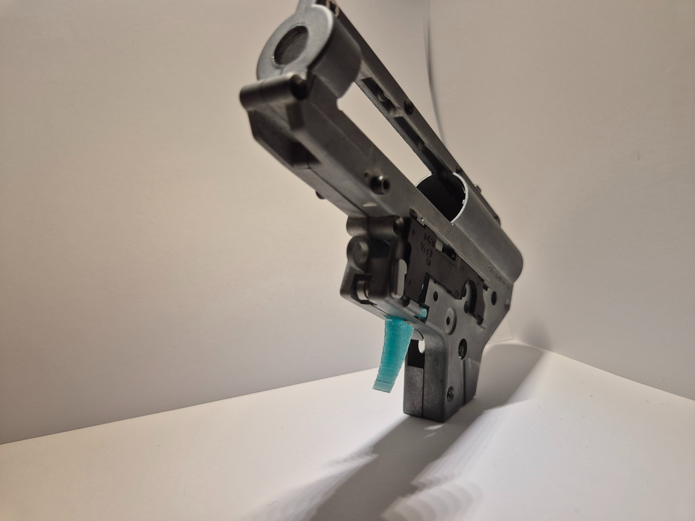 Teeth Trigger by Hostruk for asg M4/Ar-15 replica. Solid, holds well. Made of PETG (polyethylene terephthalate glycol). The trigger is intended for AEG, HPA, spring-powered and gas replicas. The trigger has rough cutouts on the sides.
