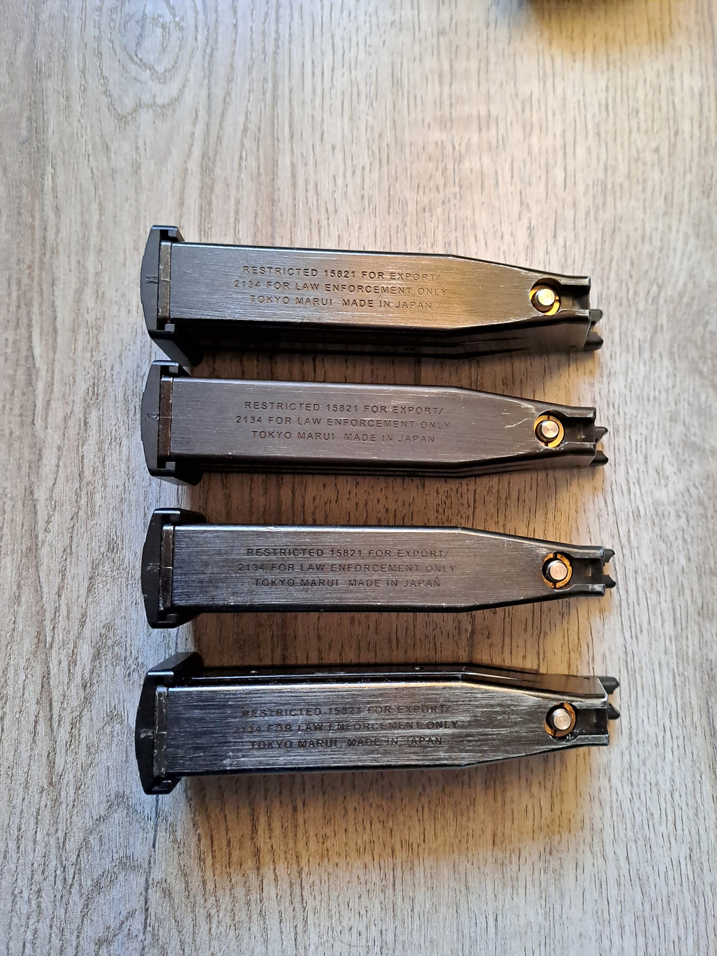 De Hi-Capa komt met 4 originele Tokyo Marui magazijnen.
